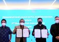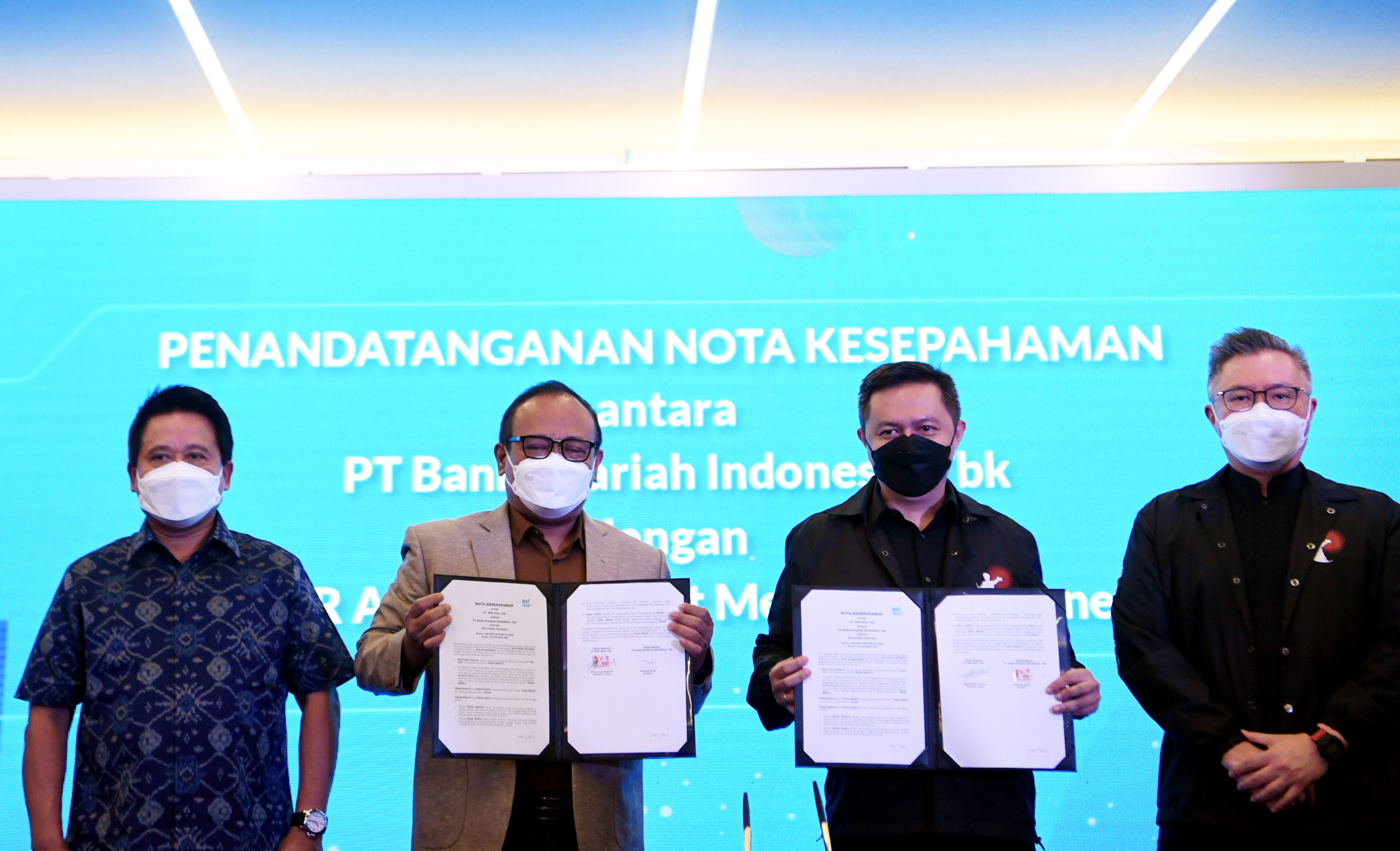 Penandatanganan dilakukan oleh Direktur Information Technology BSI Achmad Syafii (dua dari kiri) & Direktur Utama WIR Group Michael Budi (tiga dari kiri) dan Komisaris Utama WIR Group Daniel Surya (paling kanan).