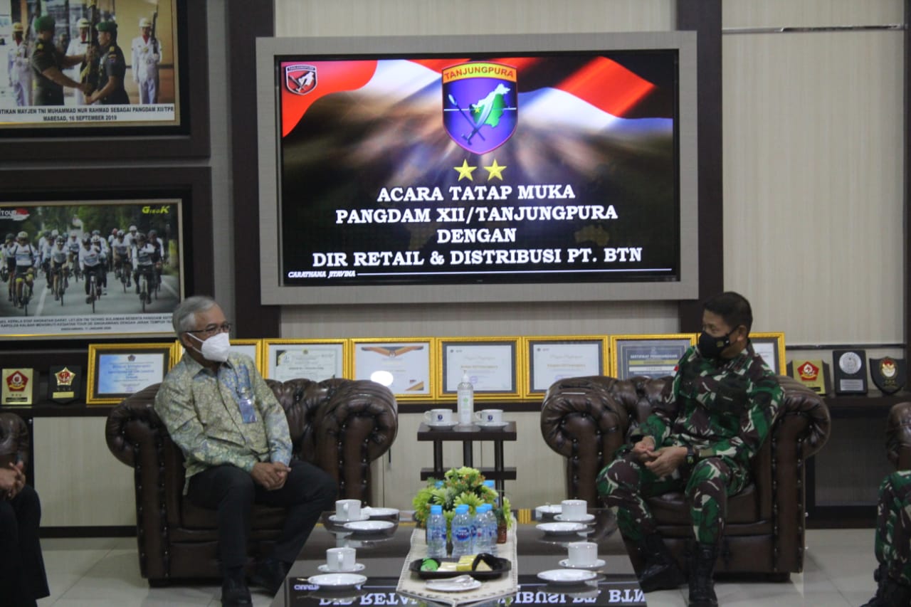 Direktur Distribution and Retail Funding Bank BTN, Jasmin melakukan tukar menukar plakat bersama Panglima Kodam XII Tanjungpura Mayjen TNI Muhammad Nur Rahmad pekan lalu di markas TNI AD Tanjungpura, Kalimantan Barat. Pada kunjungan kerja ke Pangdam Tanjungpura tersebut Bank BTN melakukan audiensi untuk terbukanya kerjasama antara Bank BTN dengan Pangdam Tanjungpura terkait jasa dan layanan perbankan yang dapat dinikmati oleh seluruh anggota TNI AD Tanjungpura. Dengan keunggulan yang dimiliki BTN sebagai mortgage bank di Indonesia, terbuka peluang perseroan untuk memberikan pelayanan kepemilikan rumah bagi anggota TNI AD melalui BTN Solusi.