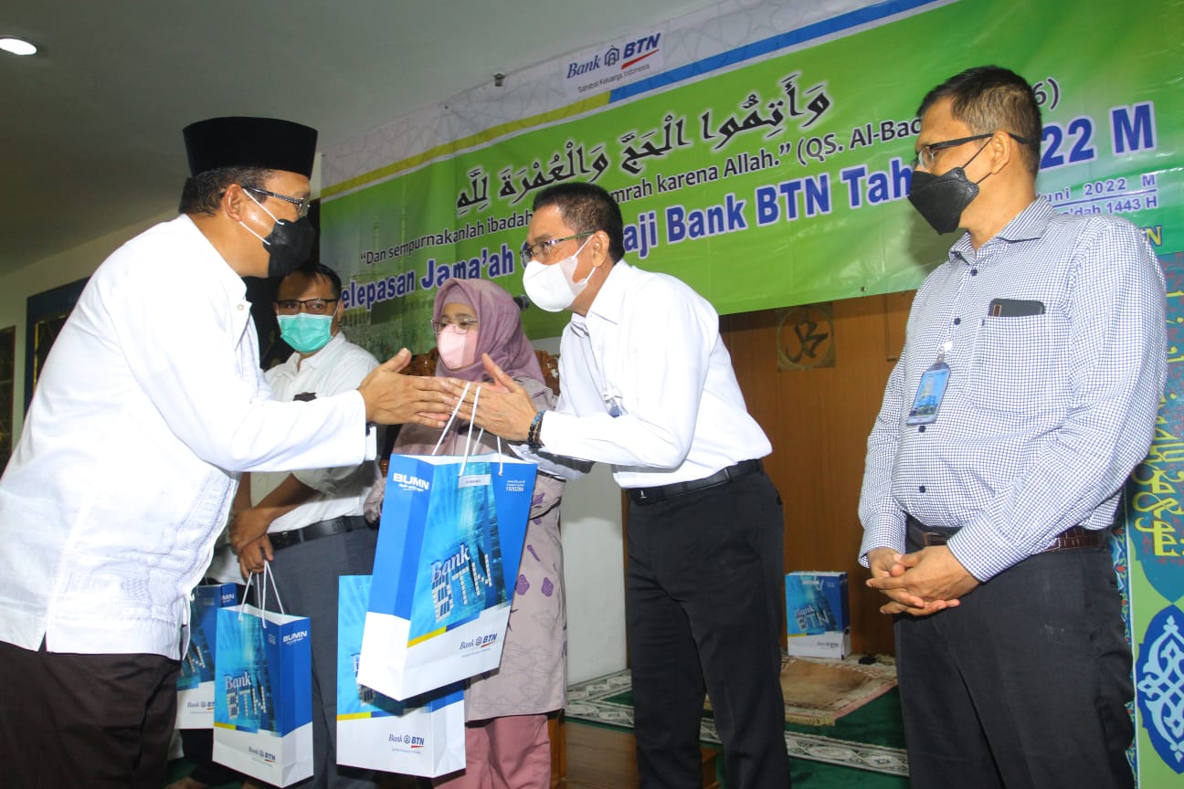 Direktur Utama PT Bank Tabungan Negarq (Persero) Tbk Haru Koesmahargyo bersama Direktur Human Capital, Compliance and Legal Bank BTN Eko Waluyo melepas pegawai dan kekuarga pegawai yang akan menjalankan ibadah haji di Jakarta, Kamis (9/6). Pemerintah Arab saudi sebagaimana diketahui telah membuka quota haji termasuk untuk jamaah calon haji dari Indonesia. Tahun ini tercatat sekitar 30 orang pegawai Bank BTN bersama pasangannya yang akan berangkat haji ke tanah suci untuk memenuhi rukun iman ke lima tersebut.