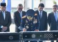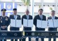 Direktur Utama PT Bank Tabungan Negara (Persero) Tbk (BTN) Nixon LP Napitupulu (kanan) dan Menteri Imigrasi dan Pemasyarakatan RI Jenderal Pol. (Purn) Agus Andrianto (kiri) menandatangani nota kesepahaman bersama para pimpinan kementerian dan lembaga lainnya saat upacara Peringatan Hari Bhakti Kementerian Imigrasi dan Pemasyarakatan ke-1 Tahun di Lembaga Pemasyarakatan (Lapas) Kelas IIA Narkotika Jakarta, Jatinegara, Jakarta Timur, Rabu (19/11). Penandatanganan ini menandai penguatan sinergi BTN dalam penyediaan dan pemanfaatan produk perbankan di lingkungan Kementerian Imigrasi dan Pemasyarakatan RI.
