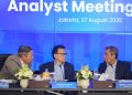 Direktur Utama BTN Nixon LP Napitupulu (tengah) didampingi Direktur Network & Retail Funding BTN Rully Setiawan (kiri), Direktur Finance & Strategy BTN Nofry Rony Poetra (kedua kiri), Direktur Risk Management BTN Setiyo Wibowo (kedua kanan), dan SEVP Digital Business BTN Thomas Wahyudi (kanan) kompak tersenyum sembari melihat laporan keuangan BTN Semester I/2025 di Menara 2 BTN, Jakarta, Rabu (27/8). Per 30 Juni 2025, BTN membukukan laba bersih sebesar Rp1,7 triliun, naik 13,6% secara year-on-year (yoy) dibandingkan periode yang sama tahun lalu sebesar Rp1,5 triliun. Peningkatan laba bersih tersebut ditopang oleh pendapatan bunga kredit yang naik 23,5% yoy menjadi Rp18,50 triliun hingga Juni 2025 serta efisiensi proses bisnis di tengah tantangan makroekonomi. Penyaluran kredit dan pembiayaan BTN juga tercatat tumbuh 6,8% yoy menjadi Rp376,11 triliun hingga semester I/2025, didukung oleh pertumbuhan kredit dan pembiayaan ke sektor perumahan dan non-perumahan. BTN juga mencatat pertumbuhan dana pihak ketiga sebesar 11,2% yoy menjadi Rp406,38 triliun hingga semester I/2025, sejalan dengan upaya perseroan untuk memperkuat mesin pendanaan, terutama dana murah dan tidak terlepas dari upaya menggencarkan akusisi pengguna baru melalui aplikasi Bale by BTN.
