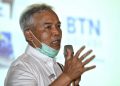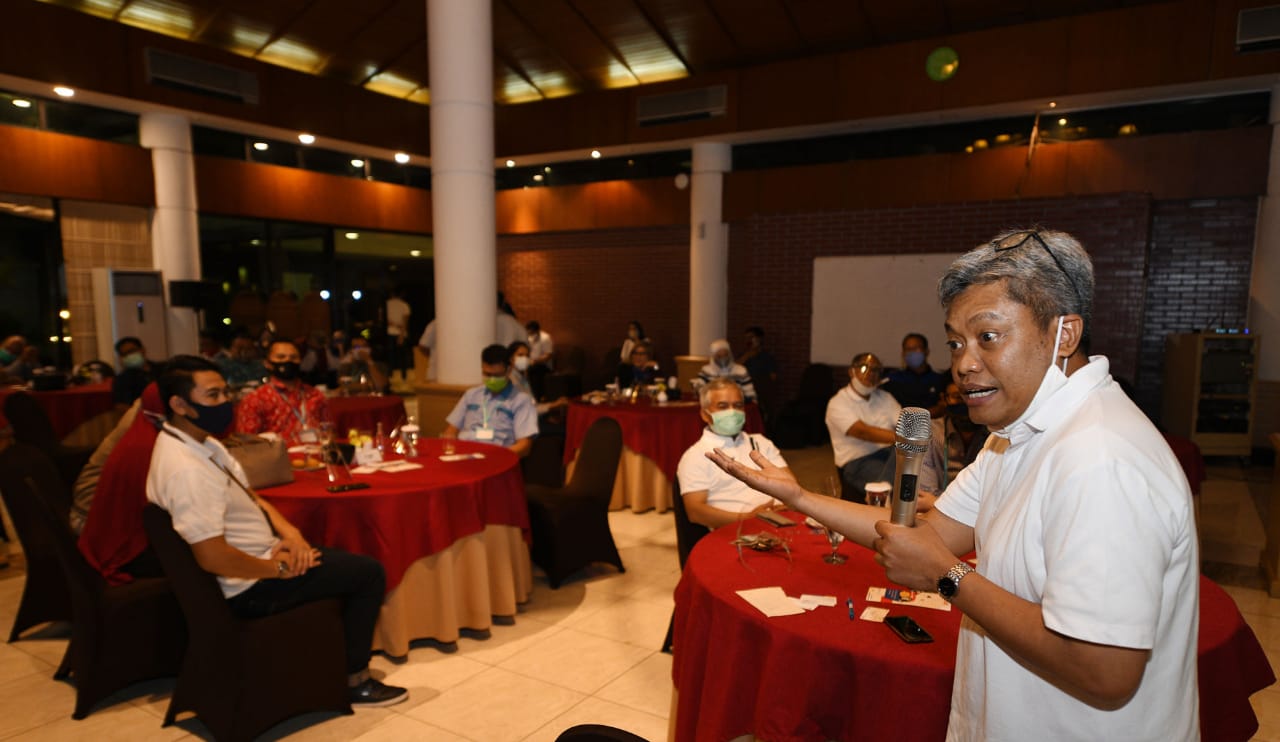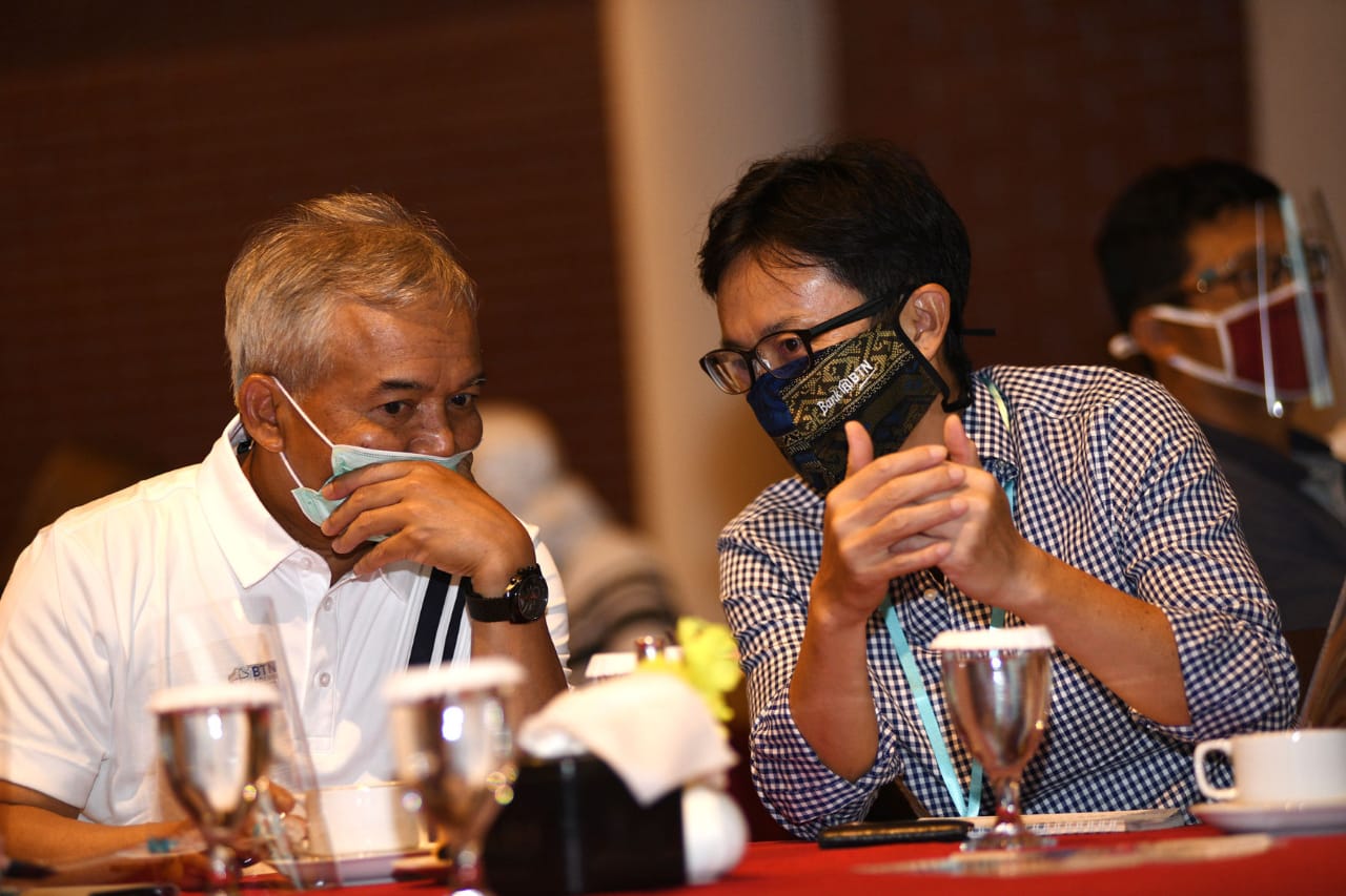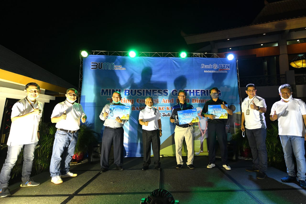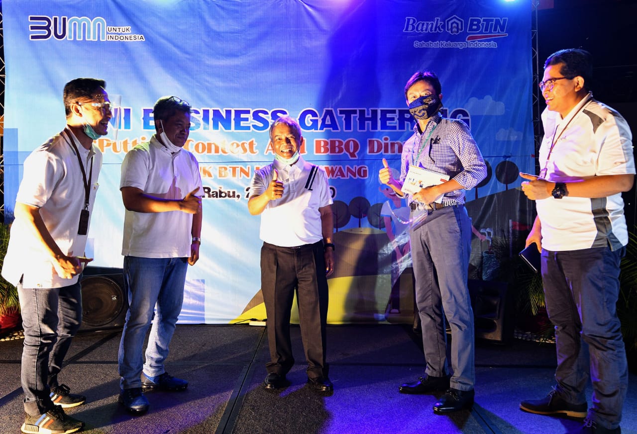 Direktur PT Bank Tabungan Negara (Persero) Tbk. Jasmin (tengah) didampingi Branch Manager KC Karawang Denny Kriswana (kiri), Kepala Divisi Subsidized Mortgage Lending Division Moch. Yut Penta (kedua kiri) dan Kepala Divisi Retail Funding and Service Division Kusumarjono (kanan) berbincang dengan Direktur Sinarmas Grup Shingo Kobayashi (kedua kanan) dalam pembukaan Business Gathering, di Kawasan Industri Karawang, Jawa Barat, Rabu Malam (22/7). Bank BTN proaktif menjalin kemitraan dengan Kawasan Industri Karawang dengan menawarkan program BTN Solusi yang memberikan fasilitas pengelolaan dana payrol hingga layanan KPR bagi para karyawan industrial. Sejak diluncurkan pada awal Februari hingga Juni 2020, tabungan BTN Solusi telah menggaet sebanyak lebih dari 120 ribu rekening dengan total nilai tabungan di atas Rp500 miliar.