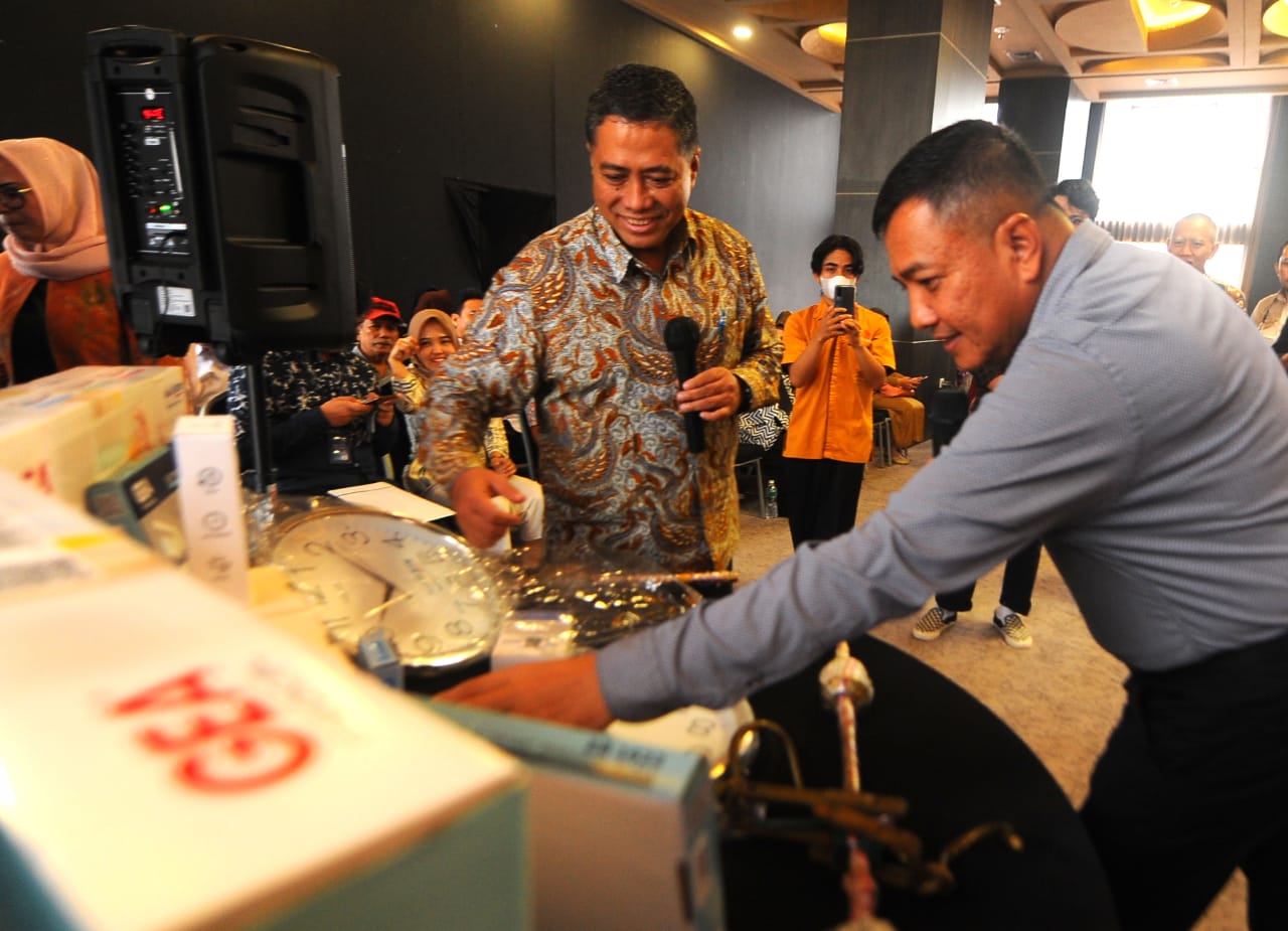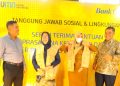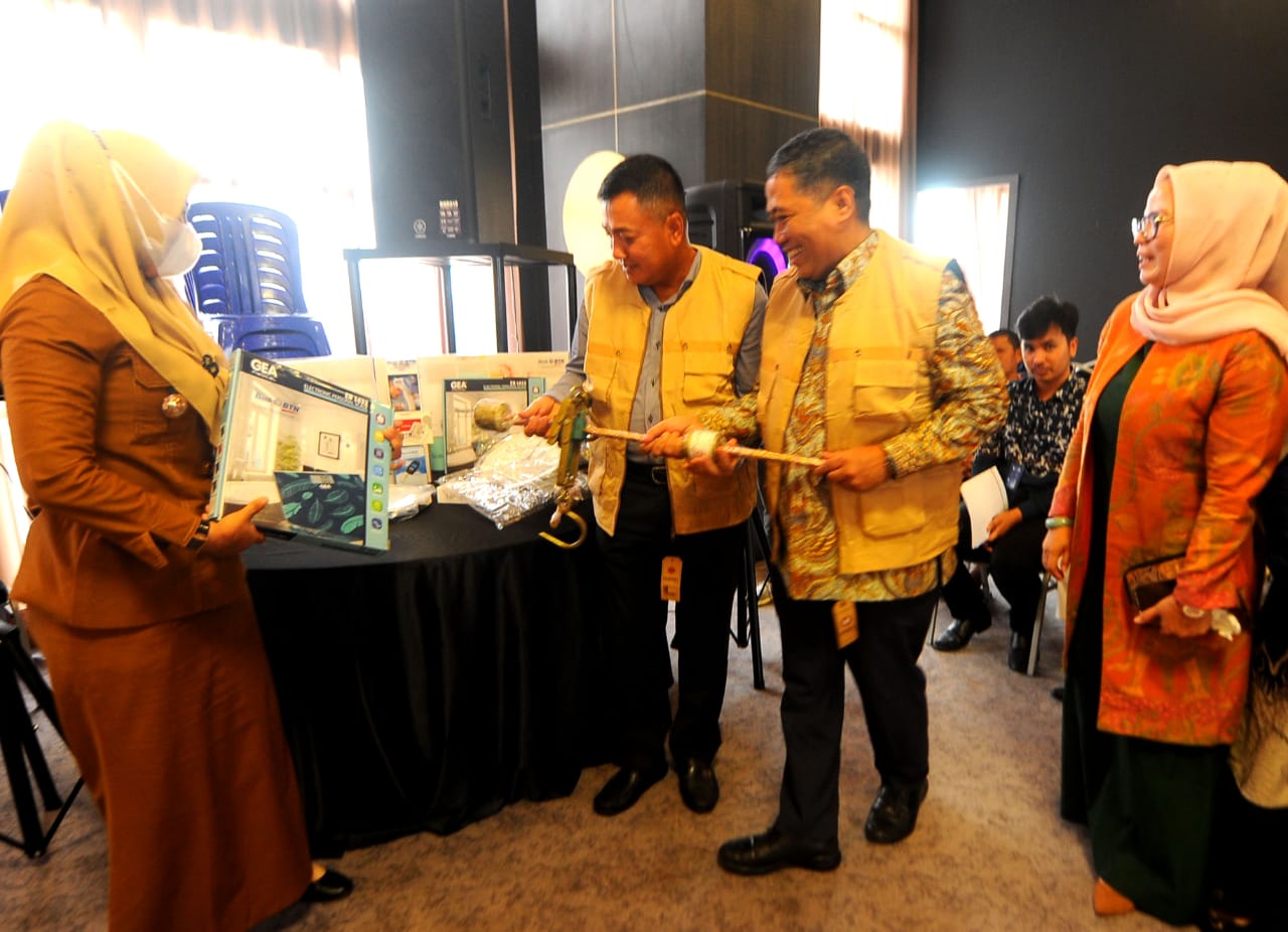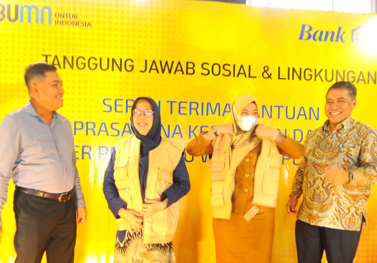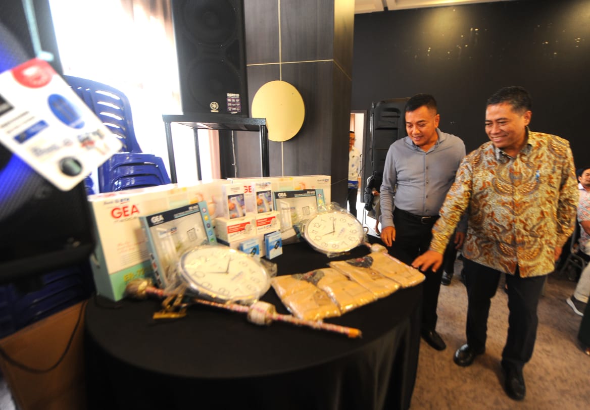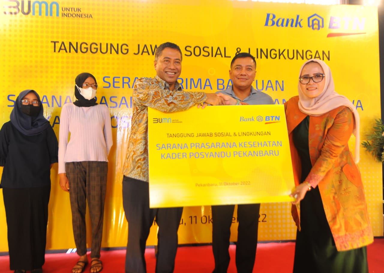 Direktur Consumer Bank BTN Hirwandi Gafar bersama Anggota Komisi VI DPR Jon Erizal secara simbolis memberikan bantuan Tanggung Jawab Sosial dan Lingkungan (TJSL) berupa sarana kesehatan kepada 51 Posyandu dan Beasiswa Pendidikan untuk kader Posyandu di Pekanbaru, Riau, Selasa (11/10). Bantuan TJSL ini merupakan bukti komitmen Bank BTN dalam mendukung pembangunan berkelanjutan untuk menjamin kehidupan yang sehat dan meningkatkan kesejahteraan masyarakat.