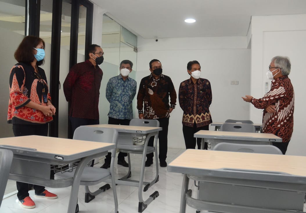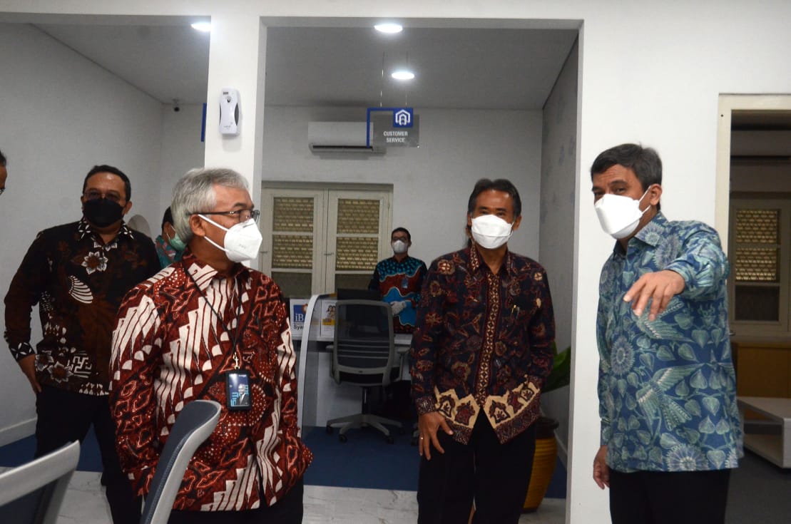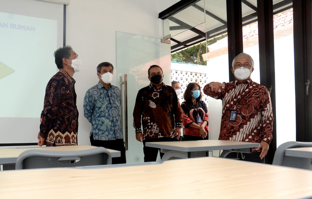 Plt Direktur Utama PT Bank Tabungan Negara (Persero) Tbk (BTN) Nixon LP Napitupulu bersama sejumlah Direksi BTN Jasmin, Andi Nirwoto, Elisabeth Novi dan Rektor UGM Panut Mulyono meninjau ruang belajar HFC BTN (Housing Finance Centre) di lingkungan kampus UGM, Jumat (5/2). Tahun ini Bank BTN menargetkan pertumbuhan Dana Pihak Ketiga (DPK) mencapai double digit. Untuk mencapai target tersebut perseroan melakukan ekspansi di Provinsi Daerah Istimewa Yogyakarta dengan mengincar sektor real estate dan pendidikan bekerjasama dengan UGM terutama untuk mencetak pengembang muda.
