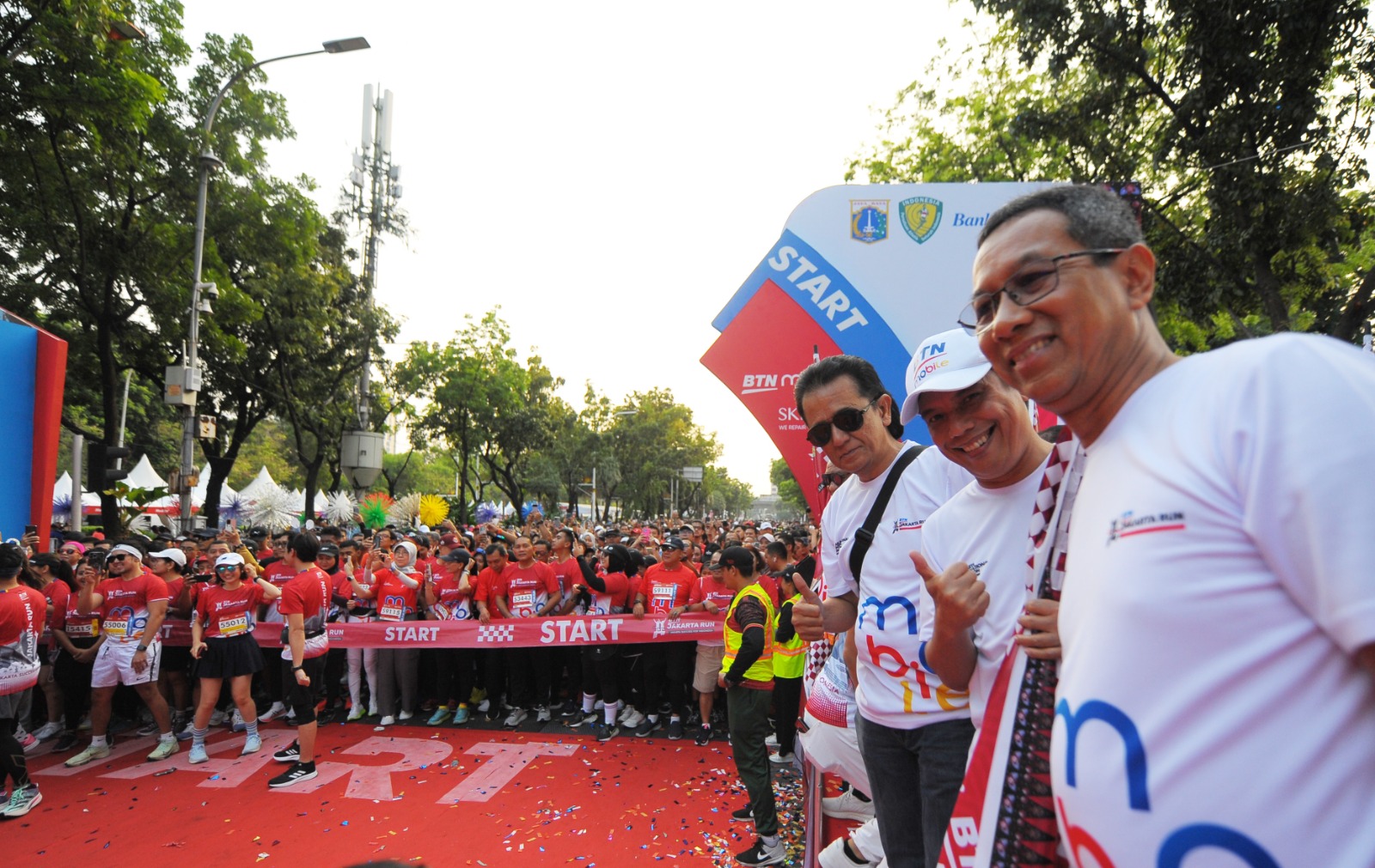 Direktur Utama Bank BTN Nixon L Napitupulu bersama Pj Gubernur DKI Jakarta Heru Budi Hartono melepas para pelari BTN Jakarta Run 2023 di Medan Merdeka Selatan, Minggu (12/11/2023). BTN Jakarta Run 2023 sukses digelar dengan jumlah peserta mencapai 12.000 pelari dari dalam dan luar negeri. Ajang ini menjadi wajah baru kegiatan lari di Jakarta dan menjadi ajang wadah berkumpulnya masyarakat dan komunitas pelari Jakarta guna menggelorakan semangat berolahraga, kebersamaan demi kesehatan yang lebih baik.