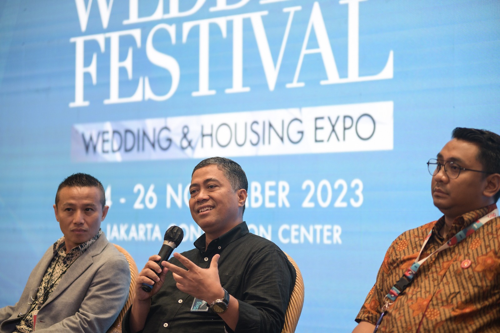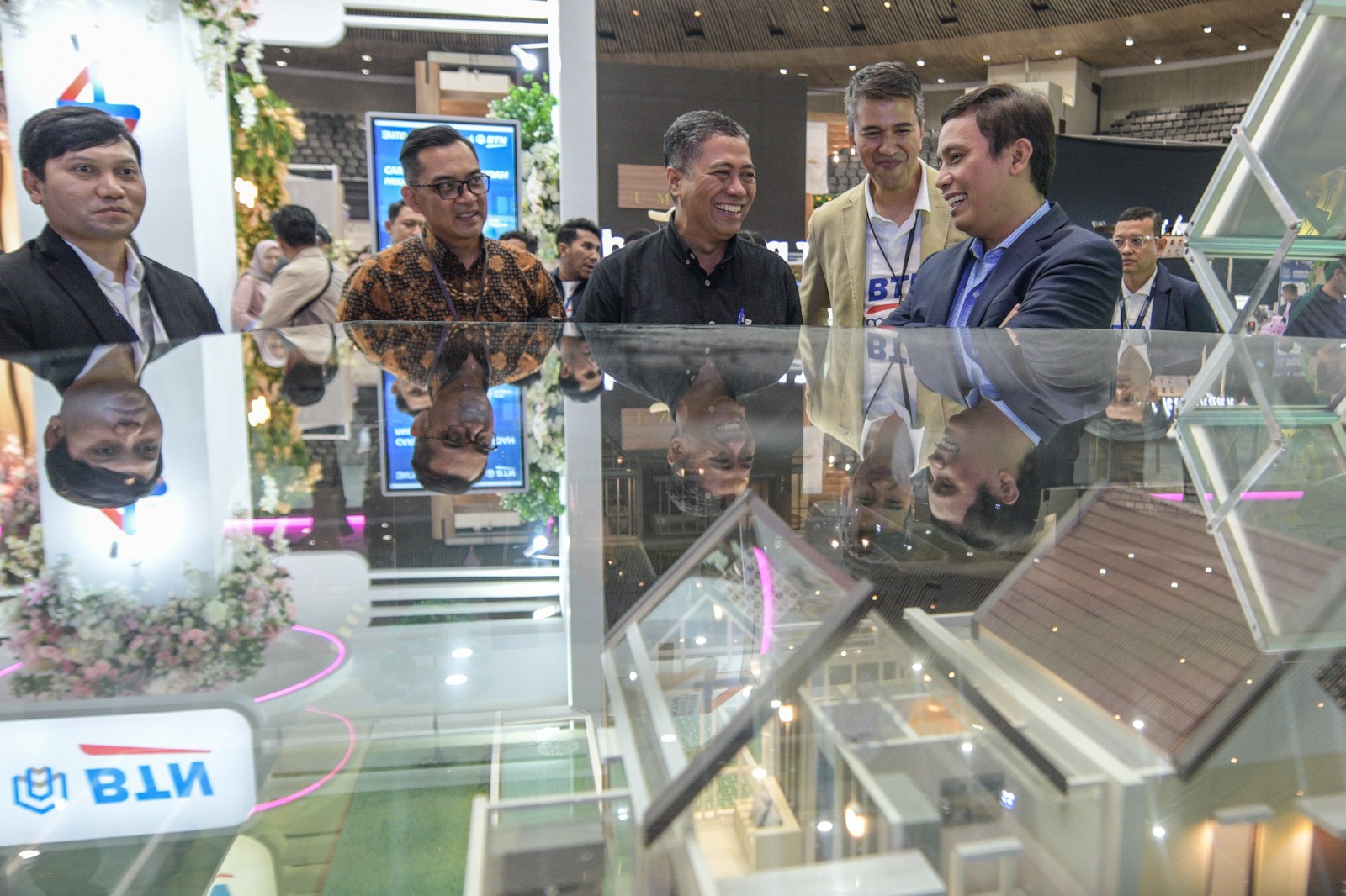 Direktur Utama Bank BTN Nixon LP Napitupulu bersama Direktur Consumer Bank BTN Hirwandi Gafar dan Corporate Secretary Bank BTN Ramon Armando mengunjungi salah satu booth perumahan pada pameran BTN Jakarta Wedding Festival 2023 di Jakarta Convention Center (JCC), Jumat (24/11). BTN Jakarta Wedding Festival 2023 merupakan event yang menggabungkan pameran pernikahan dan perumahan terbesar di Indonesia. Dalam ajang yang digelar mulai 24 November hingga 26 November 2023 ini ada sekitar 300 vendor pernikahan dan 25 pengembang perumahan yang berpartisipasi dengan menghadirkan sekitar 75-100 proyek perumahan di Jabodetabek. Bank BTN menargetkan transaksi dalam gelaran BTN Jakarta Wedding Festival 2023 sekitar Rp500 miliar.