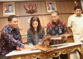 Menteri Komunikasi dan Digital Republik Indonesia Meutya Hafid (kiri), Komisioner Badan Pengelola Tabungan Perumahan Rakyat (BP Tapera) Heru Pudyo Nugroho, Direktur Jenderal Komunikasi Publik dan Media Kementerian Komunikasi dan Digital Republik Indonesia Fifi Aleyda Yahya, Direktur Consumer PT Bank Tabungan Negara (Persero) Tbk Hirwandi Gafar, dan Menteri Perumahan dan Kawasan Permukiman Republik Indonesia Maruarar Sirait (kanan) berfoto bersama usai penandatanganan Nota Kesepahaman Program Pembiayaan Perumahan bagi Wartawan, di Jakarta, Selasa (8/4/2025). Kerja sama lintas instansi ini menyiapkan alokasi 1.000 unit rumah subsidi bagi wartawan di seluruh Indonesia melalui skema KPR Sejahtera dan Tapera, sebagai bagian dari Program Rumah Nasional yang menjadi prioritas pemerintah Republik Indonesia untuk mendukung kelompok profesi strategis.
