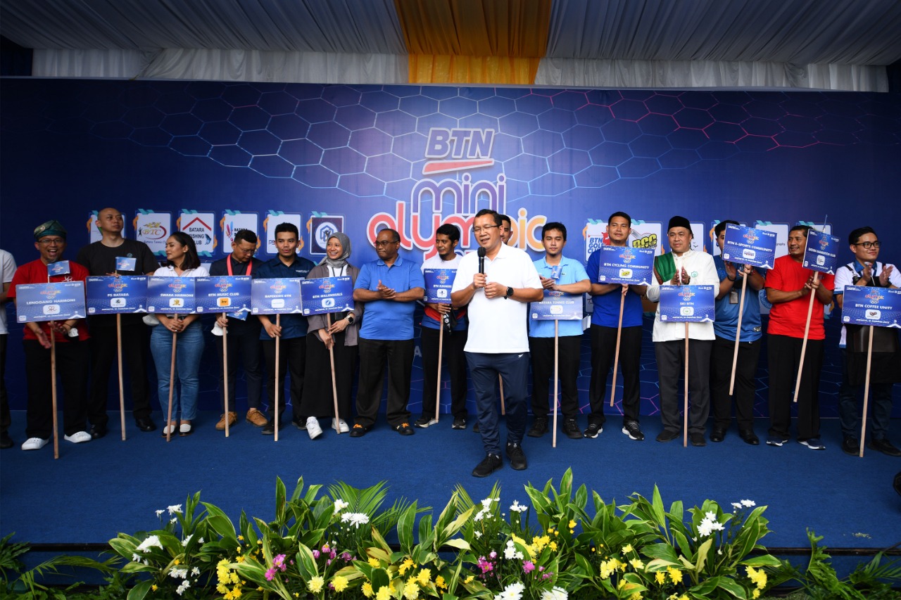 Direktur Utama Bank BTN Haru Koesmahargyo dan Wakil Komisaris Utama Bank BTN Iqbal Latanro bersama jajaran direksi dan komisaris melepas balon tanda dimulainya kegiatan BTN Mini Olympic 2023 di Jakarta, Rabu (18/1). BTN Mini Olympic merupakan rangkaian kegiatan dalam menyambut HUT Bank BTN yang ke 73 Tahun pada tanggal 9 Februari 2023. Dalam BTN Mini Olympic 2023 akan dilangsungkan pertandingan cabang olahraga antara lain: futsal, tenis meja, bowling, tenis lapangan, basket, BTN Idol dan lain-lain. BTN Mini Olympic merupakan wadah yang diberikan oleh manajemen bagi komunitas di Bank BTN yang ingin mengembangkan bakatnya. Saat ini ada sekitar 24 komunitas yang dibentuk oleh BTNers