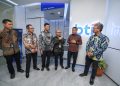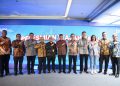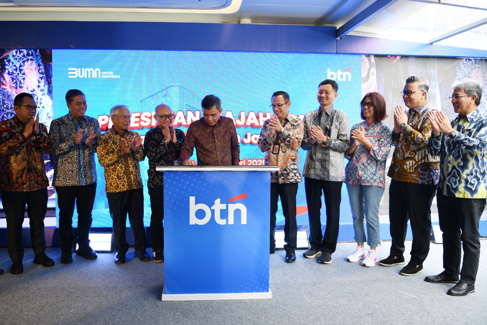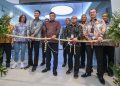 Direktur Utama BTN Nixon LP Napitupulu didampingi jajaran direksi BTN bersama Direktur Pengawasan Pelaku Usaha Jasa Keuangan, Edukasi, Perlindungan Konsumer OJK Jawa Barat Yuzirwan, Deputy Direktur BI Jawa Barat Yon Widiyono dan Kabag Tata Usaha Biro Perekonomian Pemprov Jawa Barat Arie Kurnia menggunting pita dalam peresmian Gedung Baru Kantor Wilayah BTN Jawa Barat di Bandung, Jumat (28/2). Relokasi Kantor Wilayah BTN Jawa Barat dari Bekasi ke Bandung merupakan langkah perseroan memperluas ekspansi bisnis di Jawa Barat. Dengan relokasi tersebut diharapkan BTN dan meningkatkan transaksi perbankan dan penyaluran kredit perumahan di wilayah Jawa Barat.