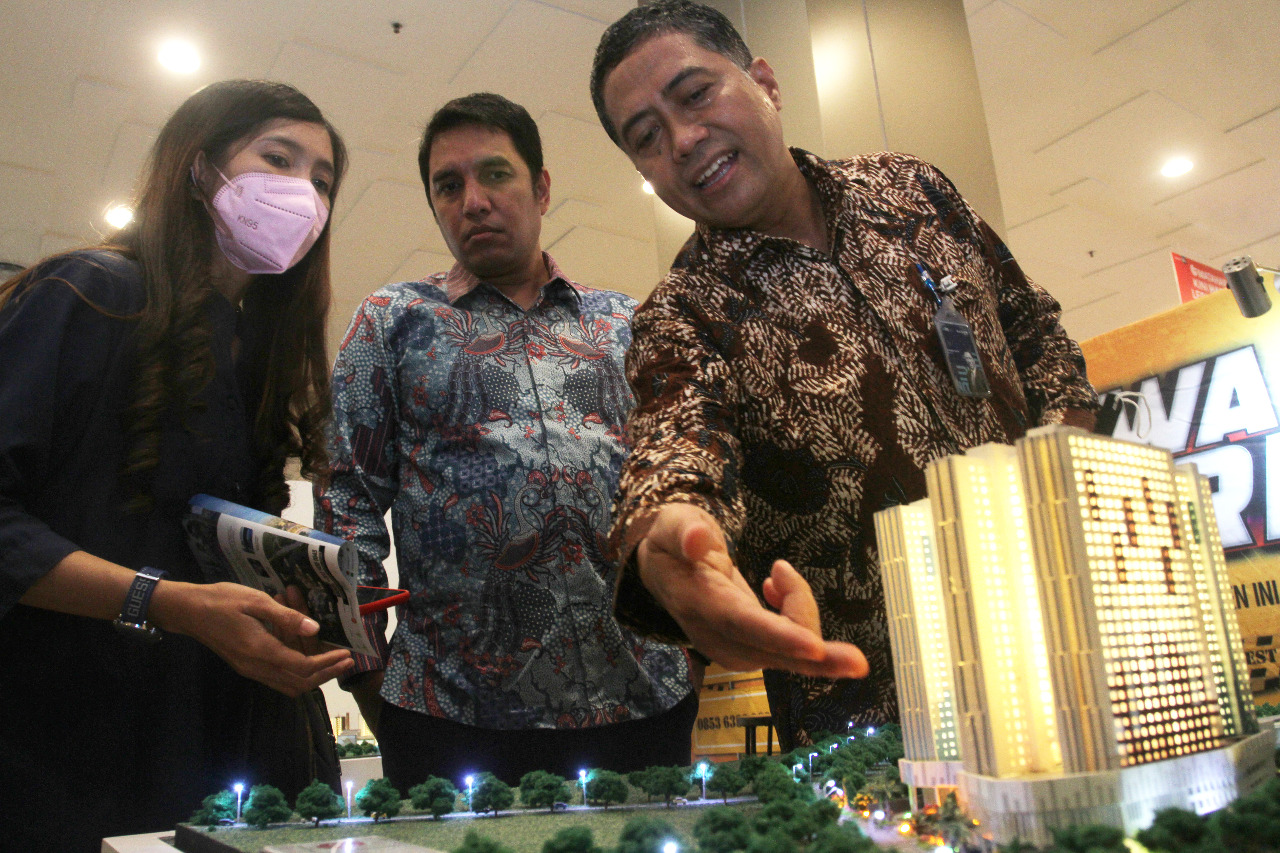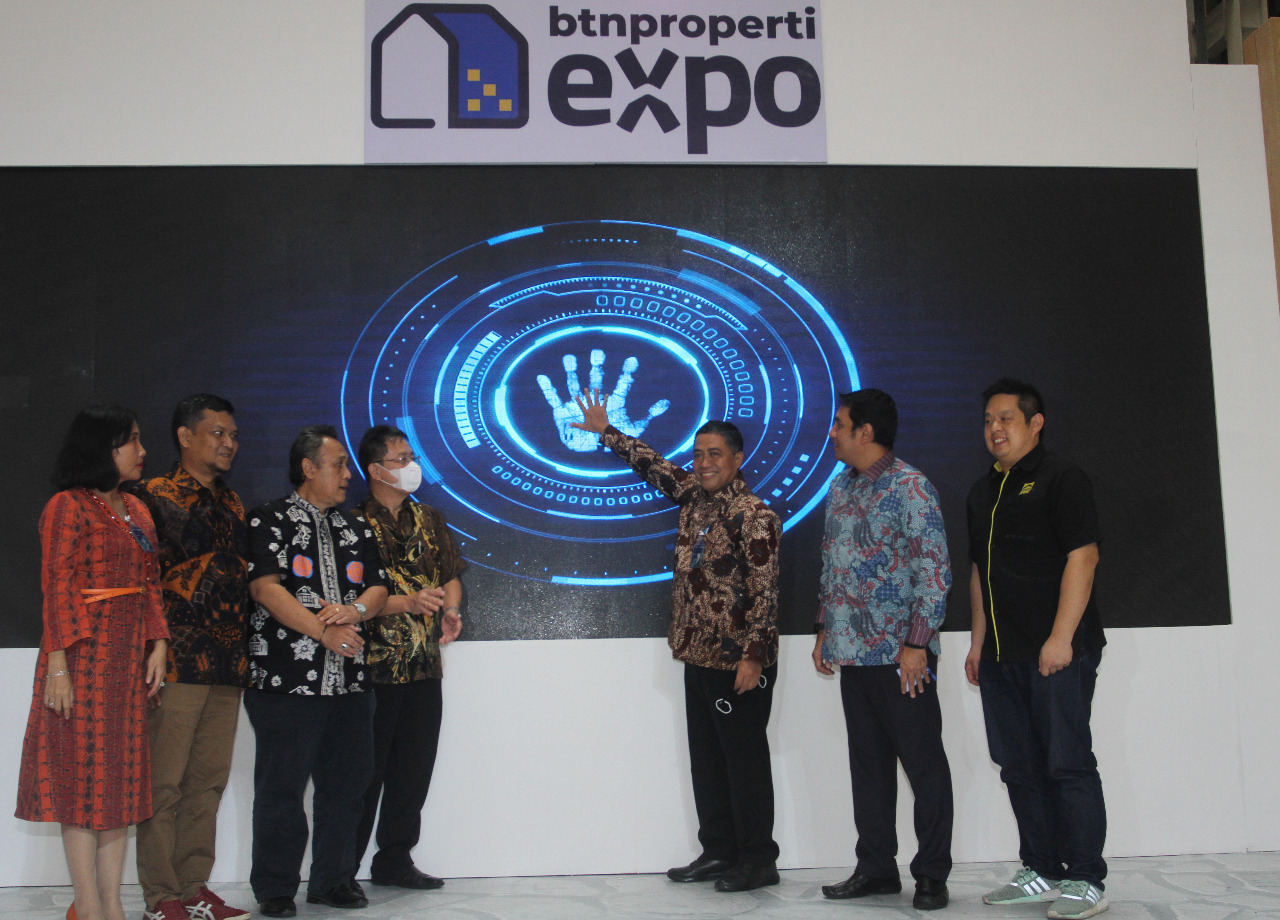 Direktur Consumer PT Bank Tabungan Negara (Persero) Tbk. Hirwandi Gafar (ketiga kanan) didampingi jajaran pengembang membuka acara BTN Properti Expo di Tangerang City Mall, Tangerang, Senin (17/10). BTN Properti Expo merupakan ajang pameran hunian serentak di 6 kota di Indonesia bagi pekerja formal dan informal yang menawarkan bunga Kredit Pemilikan Rumah (KPR) mulai 2,47% dengan jangka waktu kredit hingga 30 tahun. Bank BTN mengincar nilai penjualan senilai Rp1 triliun dari pameran tersebut. Adapun, pameran dilaksanakan pada 17-23 Oktober 2022 di Paskal Hyper Square di Bandung, Tangcity di Tangerang, Grand City Mall di Surabaya, Centre Point Mall di Medan, Duta Mall di Banjarmasin, dan Pakuwon Mall di Yogyakarta.