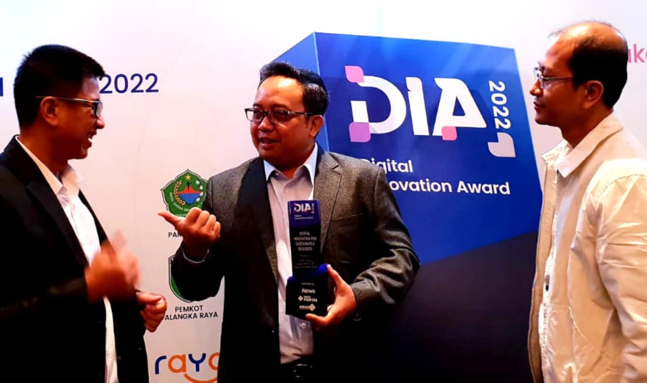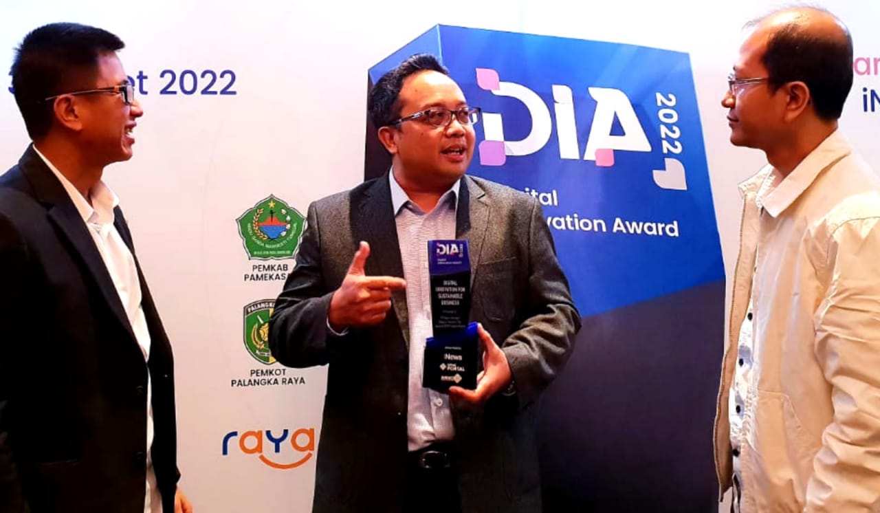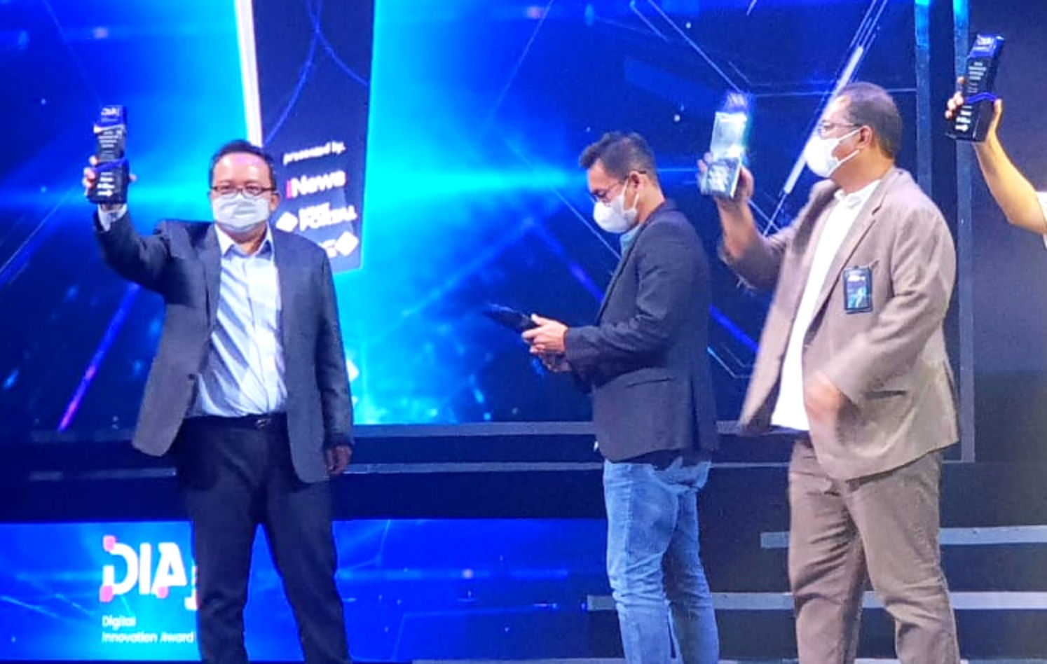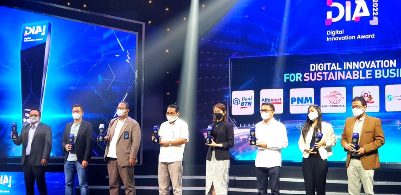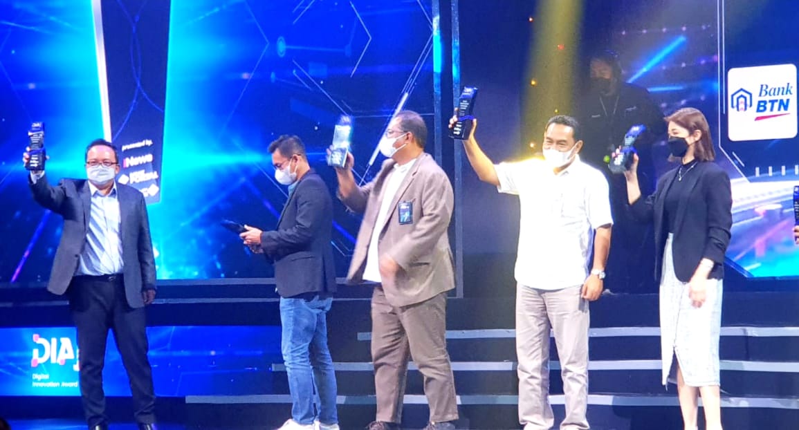 Direktur IT dan Digital PT Bank Tabungan Negara (Persero) Tbk. Andi Nirwoto (kiri) mengangkat piala penghargaan Digital Innovation Awards (DIA) 2022 di Jakarta, pekan lalu. Bank BTN sukses menyabet penghargaan tersebut atas aplikasi BTN Property Mobile yang memudahkan para pemburu rumah untuk mencari serta memiliki hunian idaman. Bank BTN berkomitmen penghargaan tersebut akan menjadi penyemangat untuk terus berinovasi di lini digital banking sehingga dapat memenuhi misi perseroan menyediakan perumahan bagi rakyat Indonesia.