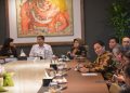Menteri Perumahan dan Kawasan Permukiman (PKP) Maruarar Sirait (tengah) bergandeng bersama Kepala Badan Pusat Statistik (BPS) Amalia Adininggar Widyasanti (kedua kiri), Direktur Consumer Banking BTN Hirwandi Gafar (kanan), Direktur Utama PT Aviasi Pariwisata Indonesia (Persero) atau InJourney Maya Watono (kedua kanan), dan Komisioner BP Tapera Heru Pudyo Nugroho (kiri) usai penandatanganan Nota Kesepahaman Program Rumah Subsidi Fasilitas Likuiditas Pembiayaan Perumahan (FLPP) bagi karyawan InJourney Group sebanyak 5.000 unit di Jakarta, Kamis (14/8/2025). Kerja sama ini diharapkan memperluas akses kepemilikan rumah layak dan terjangkau bagi karyawan sektor pariwisata nasional.