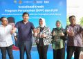 Direktur Commercial Banking BTN Hermita (kiri) bersama Menteri Perumahan dan Kawasan Permukiman (tengah) Maruarar Sirait berbincang dengan masyarakat yang terdiri dari pelaku UMKM, kontraktor, pengusaha toko bangunan, mahasiswa dan developer saat acara Sosialisasi dan Kredit Program Perumahan (KPP) di Yogyakarta, Minggu (9/11/2025). BTN siap menyukseskan program pemerintah dalam penyaluran KPP kepada masyarakat dengan menjadi bank terbesar dalam menyalurkan KPP yang menawarkan suku bunga menarik yakni 5,99% hingga Desember 2025.