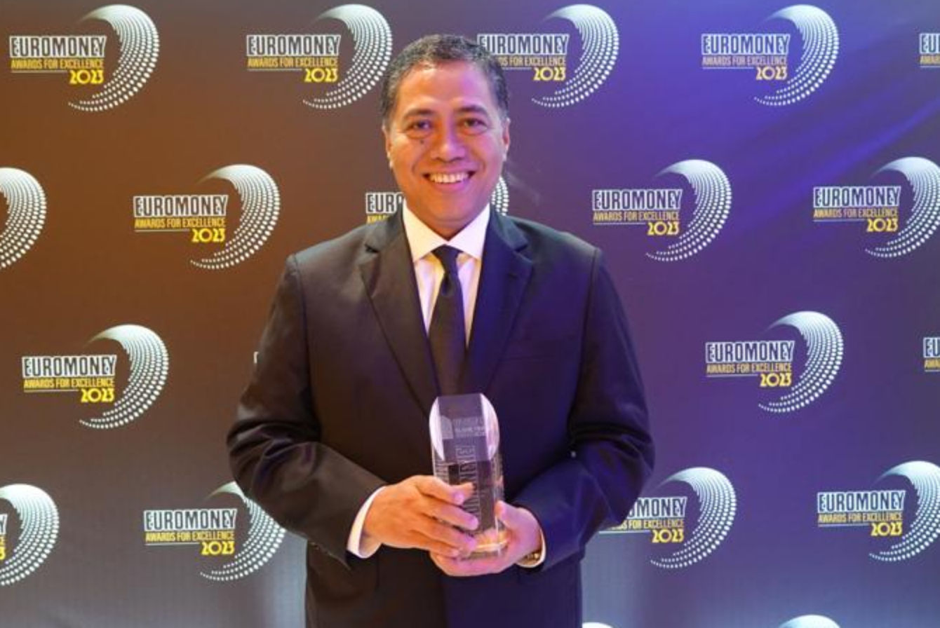 Direktur Consumer PT Bank Tabungan Negara (Persero) Tbk. Hirwandi Gafar tersenyum menerima penghargaan The Best Islamic Project Finance House 2023 yang diserahkan Middle East Editor Euromoney Elliot Wilson di acara Euromoney Awards of Excellence 2023 di Dubai, Rabu (21/6). Penghargaan tersebut merupakan apresiasi bagi BTN Syariah atas multi produk pendukung program pembiayaan di sektor perumahan yang sukses memenuhi kebutuhan hunian untuk seluruh lapisan masyarakat mulai dari para milenial, kalangan menengah, hingga masyarakat berpenghasilan rendah (MBR). Bank BTN berkomitmen akan terus berinovasi dalam produk dan meningkatkan pelayanan perbankan khususnya berbasis iB, sehingga dapat lebih banyak memberikan manfaat bagi seluruh kelompok masyarakat Indonesia khususnya dalam membantu mereka memiliki rumah melalui skema syariah.