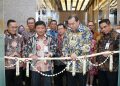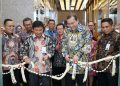 Wakil Direktur Utama BSI Bob Tyasika Ananta (kiri kedua) bersama Direktur Utama PT Bursa Efek Indonesia Iman Racman (kanan kedua) ditemani Direktur Sales & Distribution BSI Anton Sukarna (kanan pertama) dan Direktur Utama PT Kliring Penjaminan Efek Indonesia Iding Pardi (kiri pertama) saat pemotongan pita pada peresmian pembukaan BSI KCP Jakarta Bursa Efek Indonesia, Rabu (12/10).