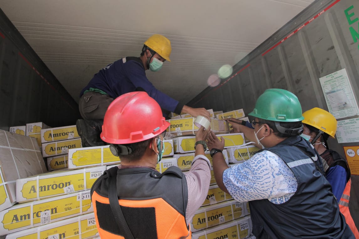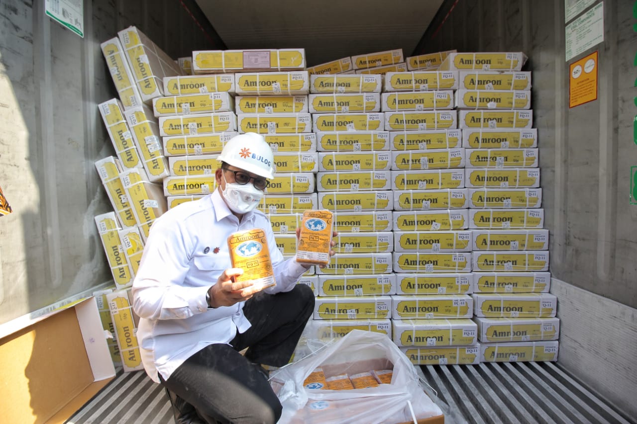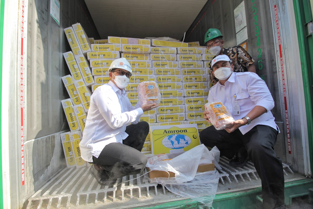 Guna memastikan percepatan masuknya cadangan stok daging nasional guna mencukupi kebutuhan dalam negeri utamanya saat Ramadhan dan Idul Fitri, Direktur Utama Perum BULOG Budi Waseso (kiri) dan Mokhammad Suyamto – Direktur Supply Chain & Pelayanan Publik memantau langsung kedatangan daging impor oleh BULOG di Terminal Mustika Alam Lestari – Tanjung Priok pada Kamis (14/04).