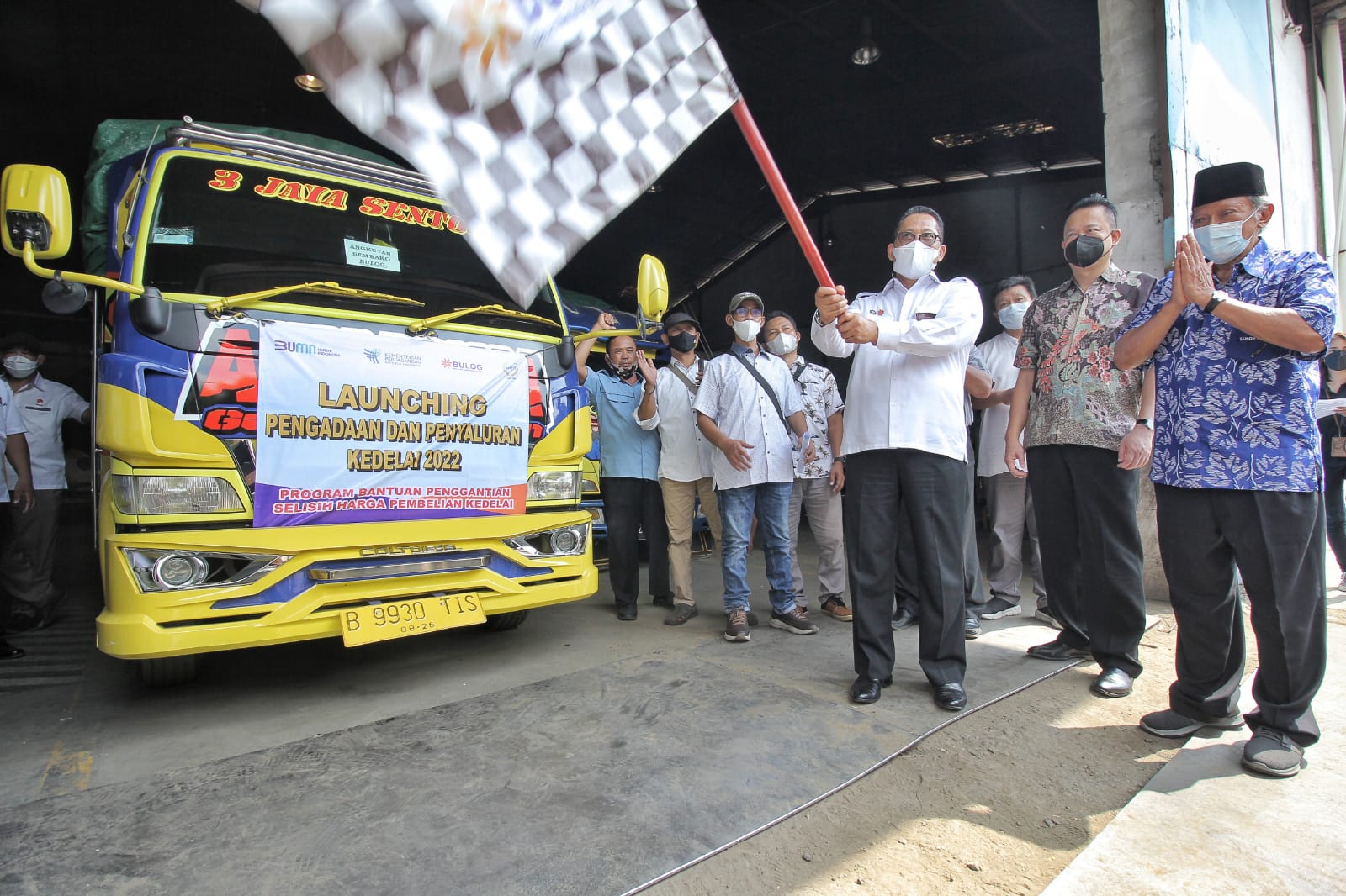 Direktur Bulog Budi Waseso dalam Peluncuran dan Pengadaan Penyaluran Kedelai 2022, Senin (18/4/2022). Perum Bulog melaksanakan pengadaan dan penyaluran perdana kedelai pada harga lebih rendah kepada Koperasi Produsen Tahu Tempe Indonesia (KOPTI) di Jawa Barat pada Senin (18/4/2022).