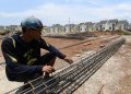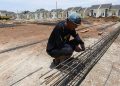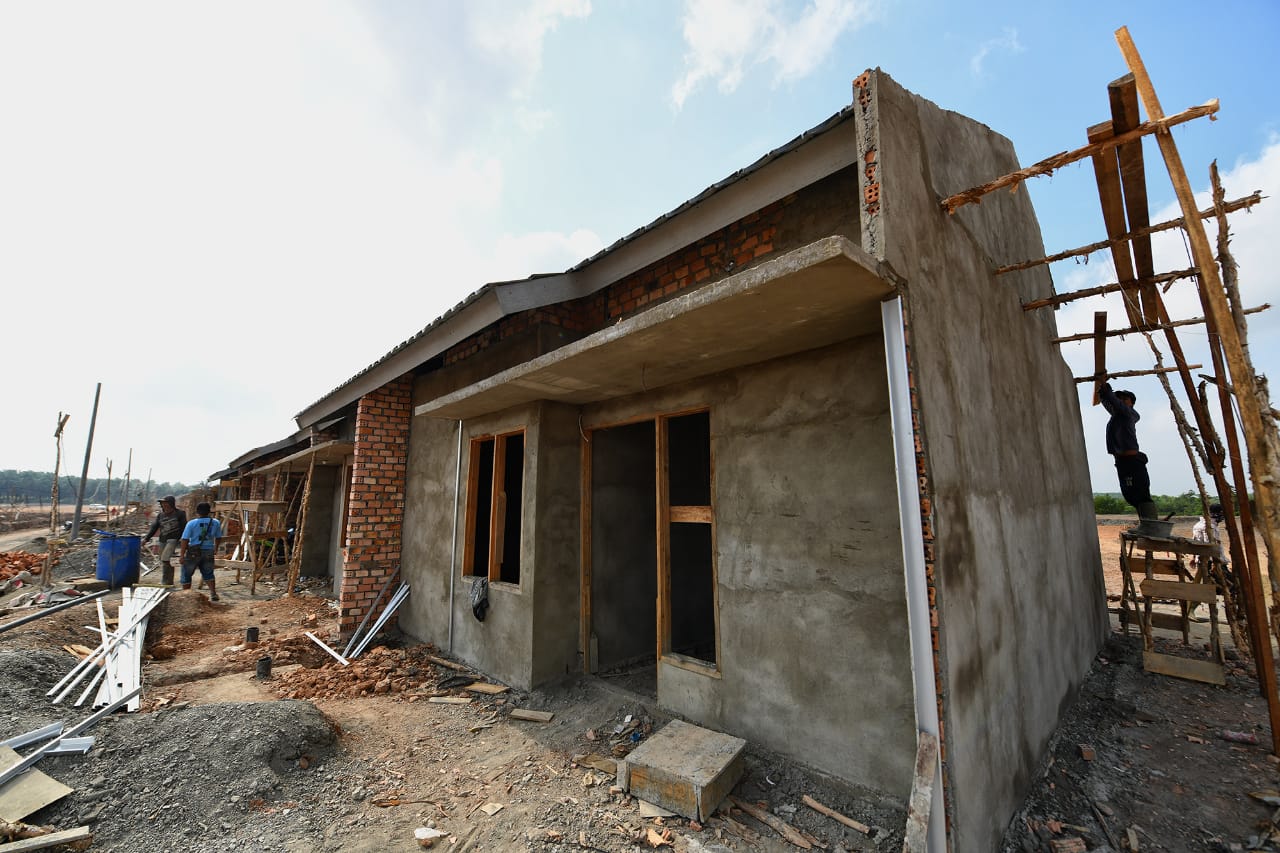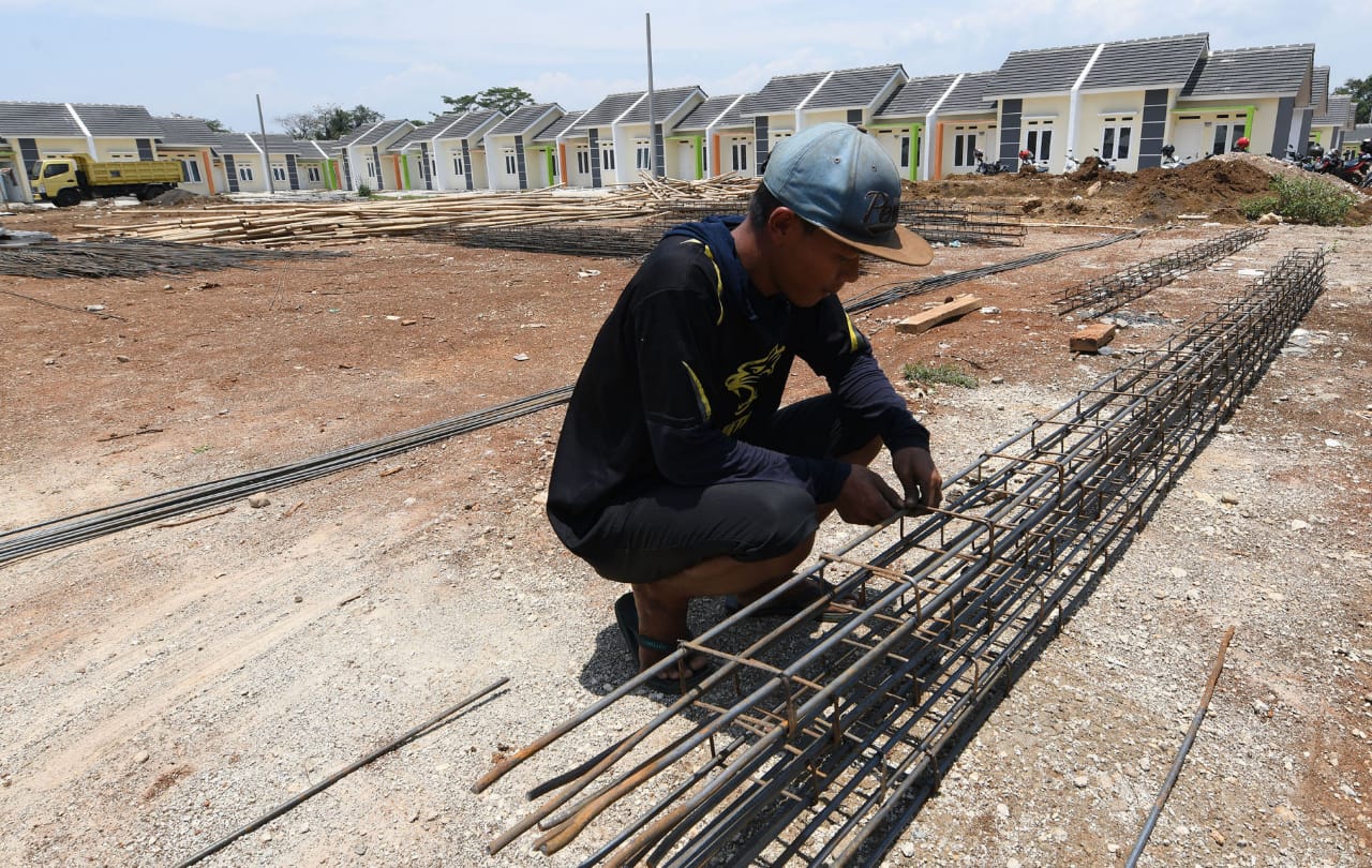 Seorang buruh bangunan sedang membangun rumah subsidi di Komplek Pesona Kahuripan 3 Cileungsi, Bogor, Jawa Barat, Kamis (1/10). PT Bank Tabungan Negara (Persero) Tbk berhasil memenuhi komitmennya dari tanggal 25 Juni hingga 25 September 2020 telah menyalurkan kredit dari dana Pemulihan Ekonomi Nasional (PEN) yang ditempatkan di BTN sebesar Rp5 Triliun berlipat tiga kali menjadi Rp 16,35triliun. Adapun dari penyaluran kredit sebesar RP 16,35triliun tersebut telah menyentuh 52.000 debitur dimana 87 persen mengalir ke sektor perumahan yang mengait pada lebih dari 170 industri ikutannya.