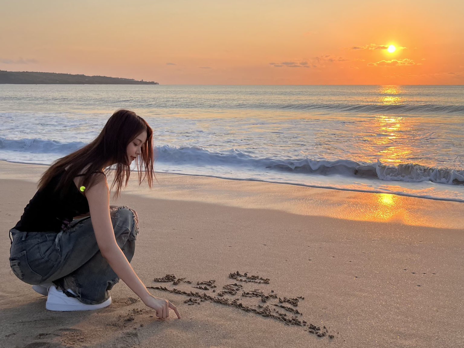 Melalui akun Weverse resmi Hearts2Hearts, Carmen membagikan beberapa foto liburannya. Salah satunya menampilkan pemandangan matahari terbenam khas Bali dengan siluet dirinya di tepi pantai. Dalam foto itu, Carmen berpose mengangkat satu kaki sambil membentuk huruf “V” dengan kedua tangannya.