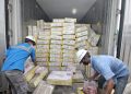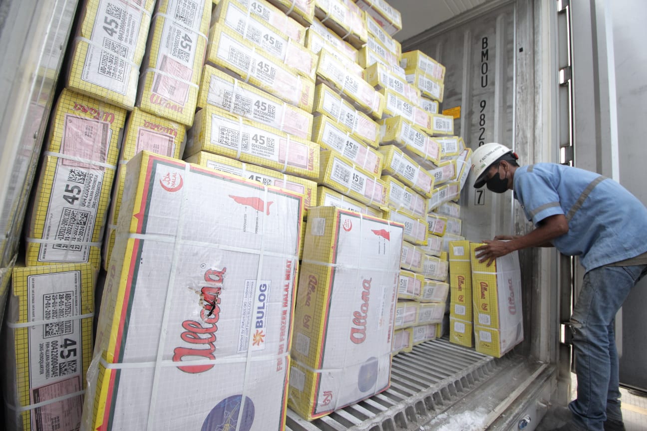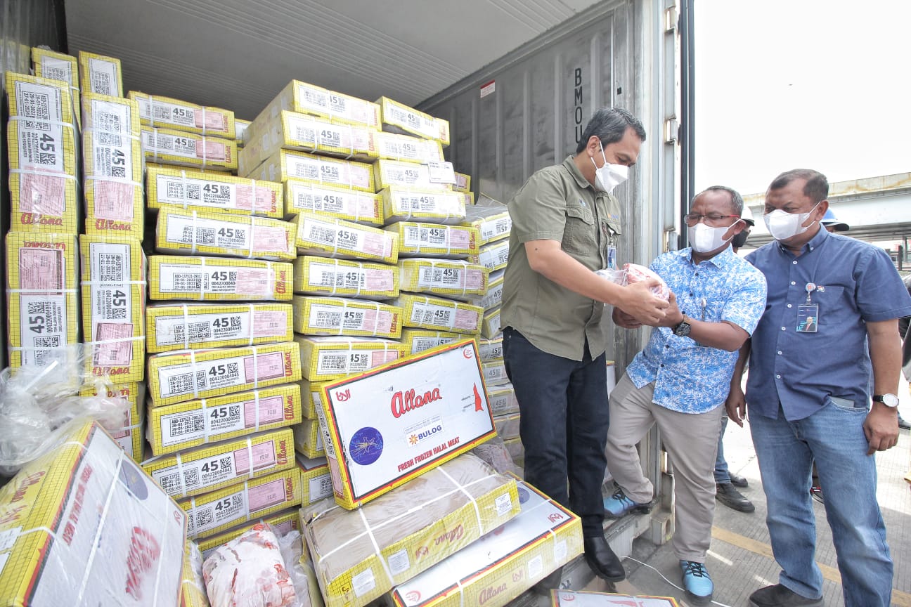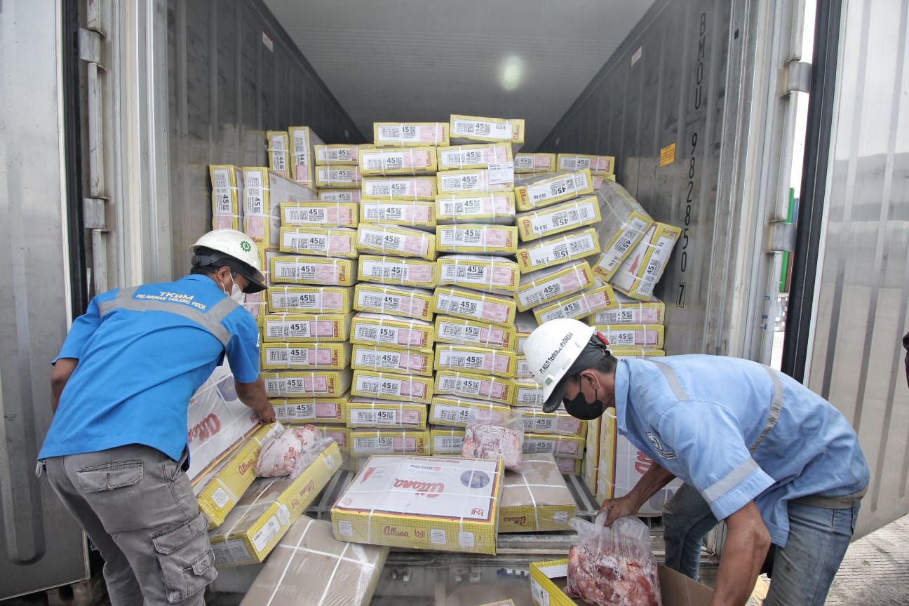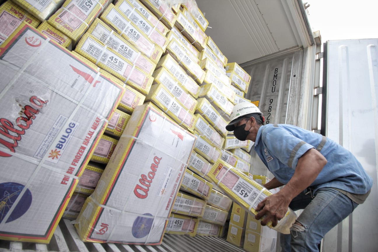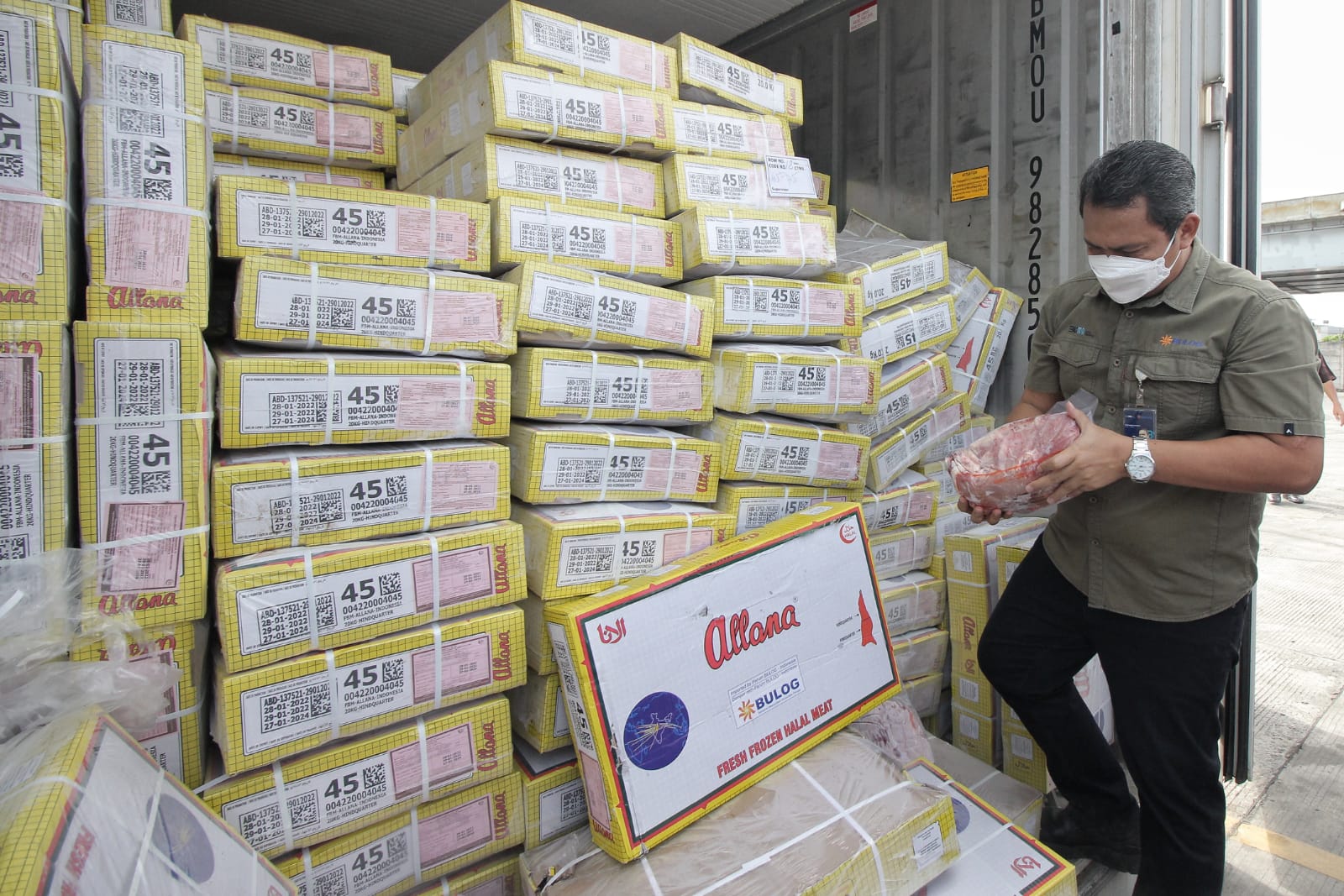 Direktur Supply Chain dan Pelayanan Publik Perum BULOG Mokhamad Suyamto saat mengecek langsung kedatangan daging impor oleh BULOG di New Priok Container Terminal One (NPCT1) pada Sabtu (05/03). Kedatangan stok daging impor oleh BULOG ini sangat dibutuhkan guna menjawab persoalan ketersediaan daging yang mengalami trend kenaikan permintaan menjelang Ramadhan dan Idul Fitri. Kepala Badan Pangan Nasional (NFA) Arief Prasetyo Adi mengapreasiasi aksi korporasi yang dilakukan oleh BULOG sebagai salah satu BUMN yang mendapat penugasan importasi daging tahun ini. FOTO/HELMI AFANDI.