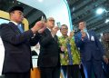 Menteri Investasi & Hilirisasi/Kepala BKPM dan CEO BPI Danantara Rosan Roeslani (kedua kiri) bersama dengan Kepala Eksekutif Pengawas Perbankan merangkap Anggota Dewan Komisioner Otoritas Jasa Keuangan (OJK) Dian Ediana Rae (kedua kanan), Direktur Utama* PT Bank Syariah Indonesia Tbk. Anggoro Eko Cahyo (kiri) dan Komisaris Utama* PT Bank Syariah Indonesia Tbk. Muhadjir Effendy (kanan) saat acara pembukaan BSI International Expo 2025 di Jakarta International Convention Center , Kamis (26/6/2025).