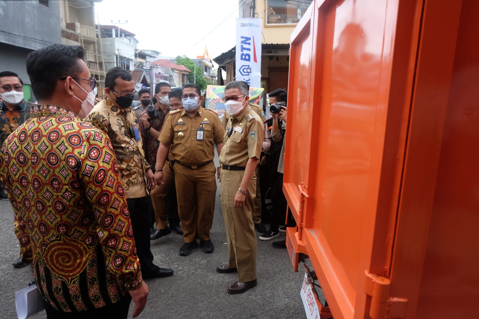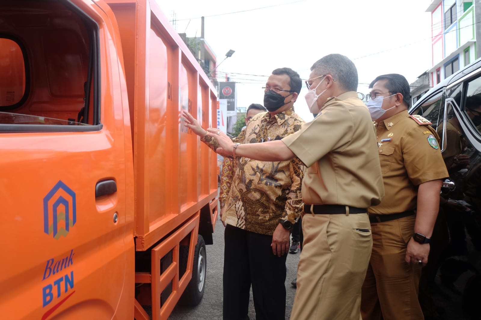 Wakil Komisaris Utama PT Bank Tabungan Negara (Persero) Tbk Iqbal Latanro (kiri) dan Direktur Utama Bank BTN, Haru Koesmahargyo (tengah) memberikan bantuan sarana dan prasarana kebersihan kepada Walikota Parepare, Taufan Pawe (kanan) di Kota Parepare, Senin (7/3). Bantuan tersebut merupakan bagian dari program Tanggung Jawab Sosial dan Lingkungan Bank BTN untuk masyarakat dan sebagai bentuk dukungan Bank BTN kepada masyarakat melalui kegiatan pengelolaan sumber daya alam dan lingkungan yang berkelanjutan sebagai penyangga seluruh kehidupan.