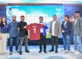Direktur Utama BTN Nixon L.P Napitupulu menerima jersey bertuliskan Bale by BTN dari Direktur Operasional PSM Makassar Rafiudin Razak dalam seremoni penandatanganan kerja sama sponsorship antara BTN dan tiga klub Liga 1—Arema FC, Persita Tangerang, serta PSM Makassar disaksikan oleh Direktur Network & Retail Funding BTN Rully Setiawan, SEVP Digital Business BTN Thomas Wahyudi, Commercial Director Persita Tangerang Evelyn Cathy, dan Business Manager Arema FC Munif Bagaskara Wakid di Jakarta, Kamis (12/6).