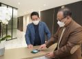 Direktur Utama Bank Syariah Indonesia, Hery Gunardi (kiri) bersama Direktur Information Technology Bank Syariah Indonesia, Achmad Syafii (kanan) saat menunjukkan aplikasi BSI Mobile di Kantor Bank Syariah Indonesia, The Tower, Jakarta, Kamis (24/6).