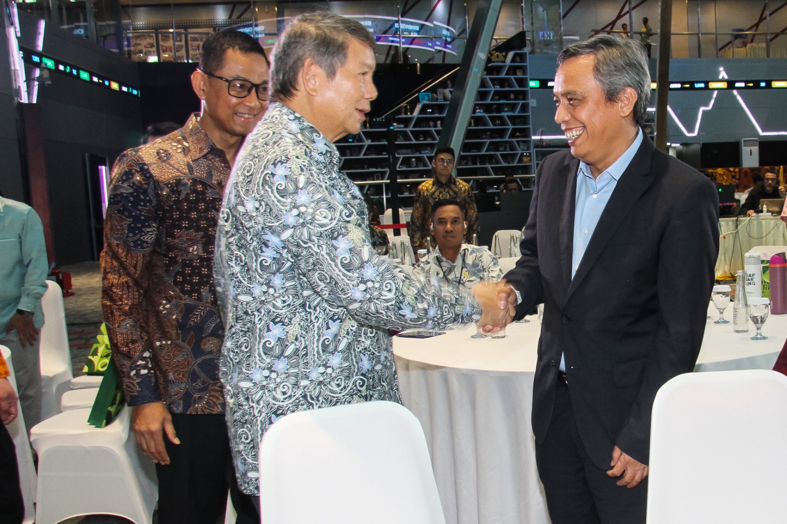 Direktur Utama PT Bank Tabungan Negara (Persero) Tbk, Nixon LP Napitupulu berjabat tangan dengan Ketua Satgas Perumahan, Hashim S. Djojohadikusumo usai menerima penghargaan Inspirational Figure in Environmental and Social Sustainability pada Investing on Climate Editors’ Choice Award 2025 di Jakarta, Jumat (5/12). Selain penghargaan individu, BTN juga meraih apresiasi di tiga kategori lainnya yaitu Best Emission Reduction, Best Literacy for Climate Resilience, dan Best Innovative Conservation. Pengakuan ini menegaskan kelayakan BTN sebagai pelopor pembiayaan hijau melalui program pengurangan emisi, program penghijauan serta inisiatif pembangunan rumah rendah emisi bagi masyarakat.
