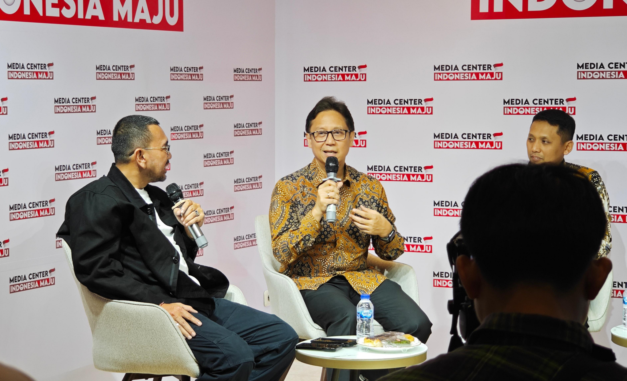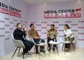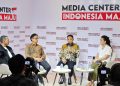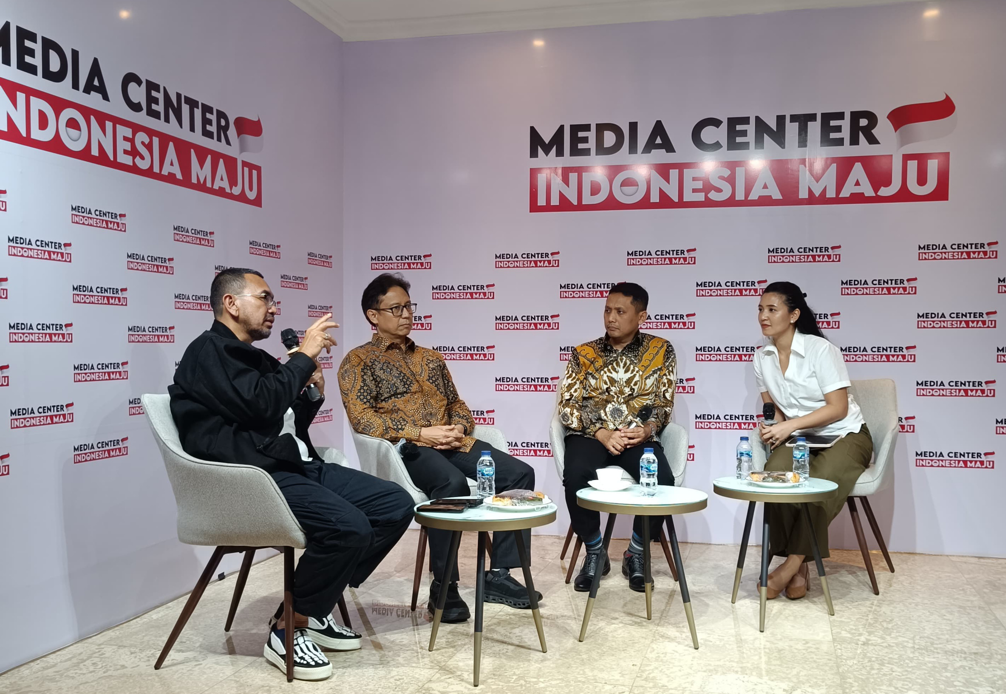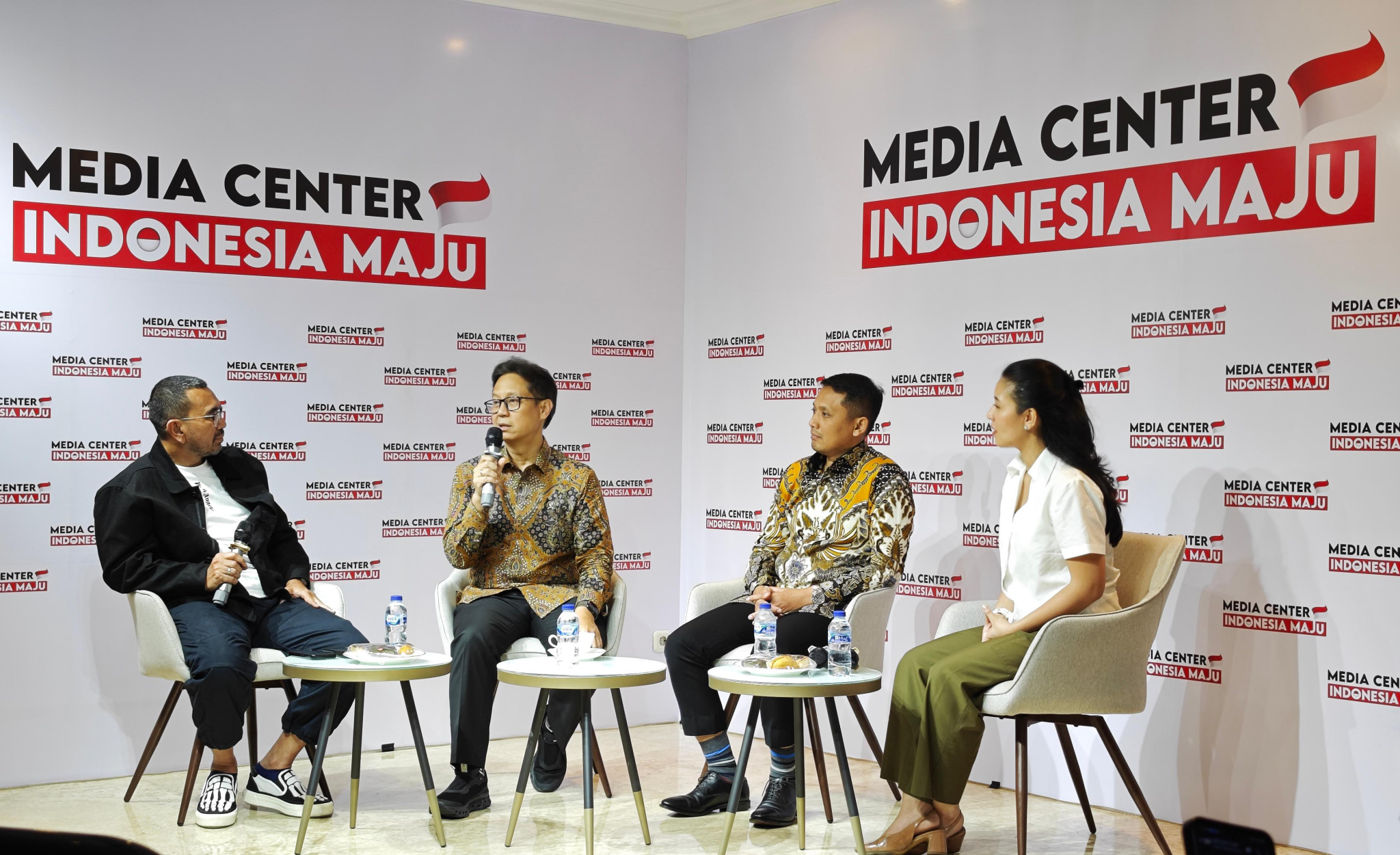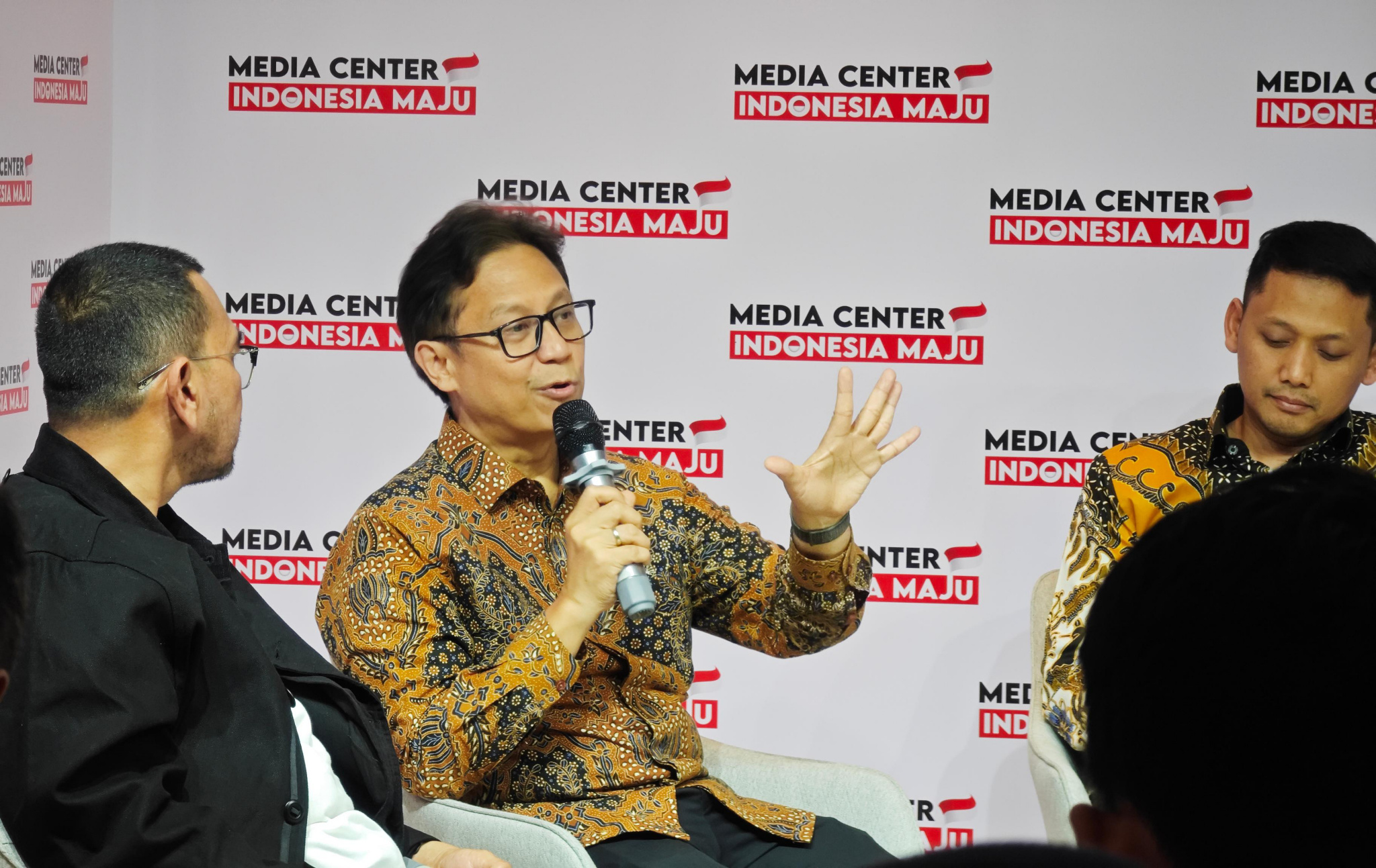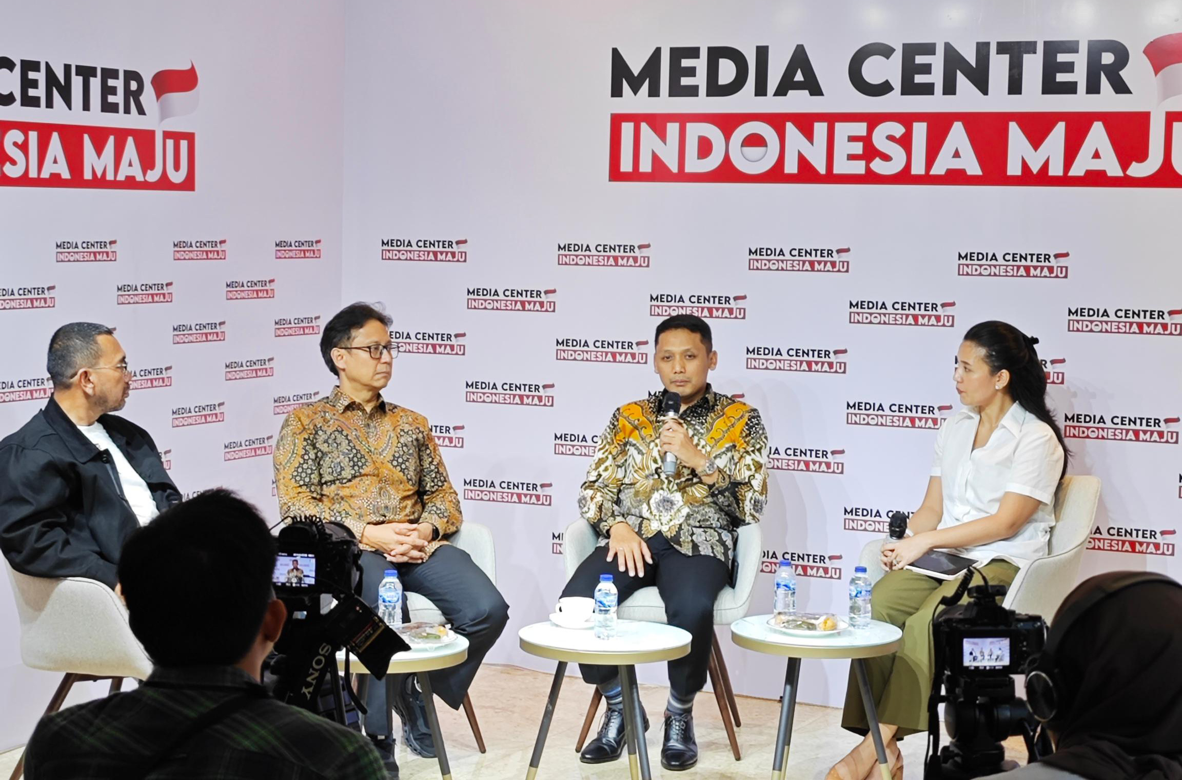 Dari Kiri ke Kanan : Arya Sinulingga Juru Bicara / Moderator Media Center Indonesia Maju, Budi Gunadi Sadikin Menteri Kesehatan RI, Soleh Ayubi Wakil Direktur Utama PT Biofarma dan Dokter Andira Utami Pegiat Kesehatan / CEO Lifewell Indonesia dalam diskusi bertajuk Kedaulatan Kesehatan yg diselenggarakan oleh Media Center Indonesia Maju, Jakarta, Kamis (14/12). Pada kesempatan tersebut Menteri Kesehatan RI Budi Gunadi mengungkapkan bahwa saat ini sudah 100 persen dari total lebih dari 10 ribu Puskesmas di Indonesia telah memiliki alat USG yg berfungsi sebagai deteksi dini kelainan janin, deteksi kelainan jantung, sekaligus deteksi dini kanker paling mematikan yakni kanker payudara. Di tahun 2022 jumlah unit USG hanya tersedia 2200 unit di Puskesmas tertentu. Kemajuan tersebut tidak terlepas dari arahan Presiden Jokowi untuk mempercepat pemerataan penggunaan USG di semua Puskesmas maksimal pada akhir tahun 2023.