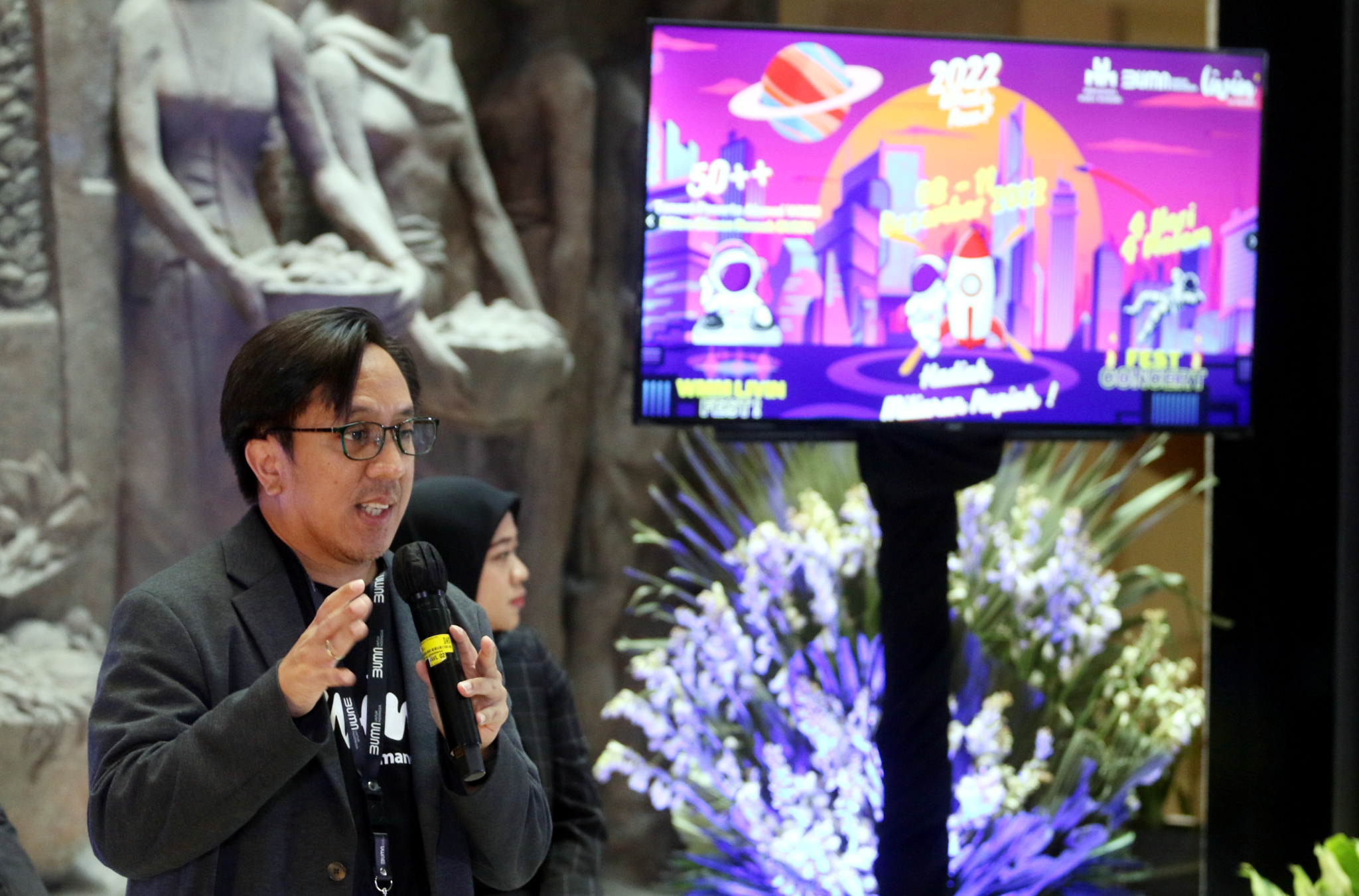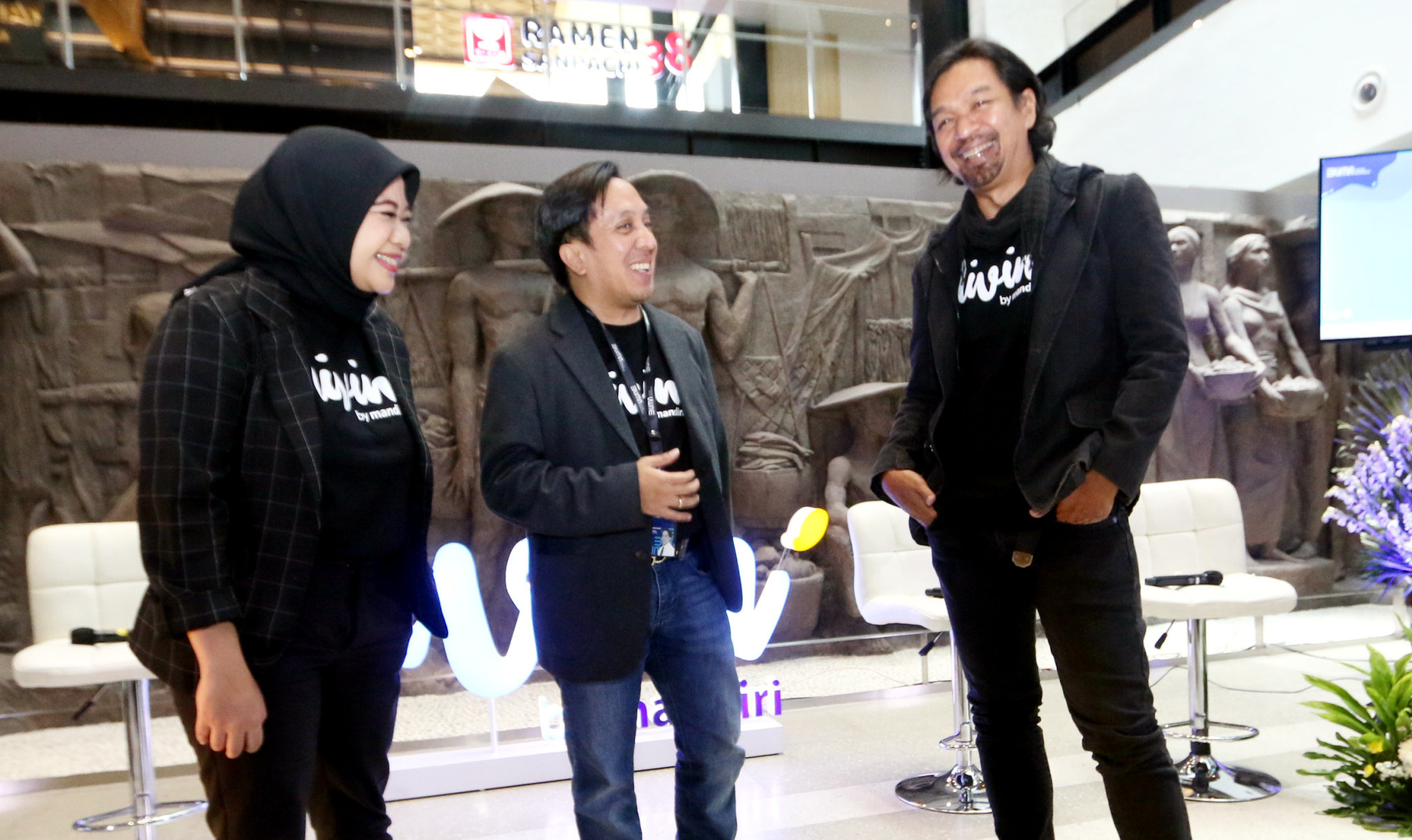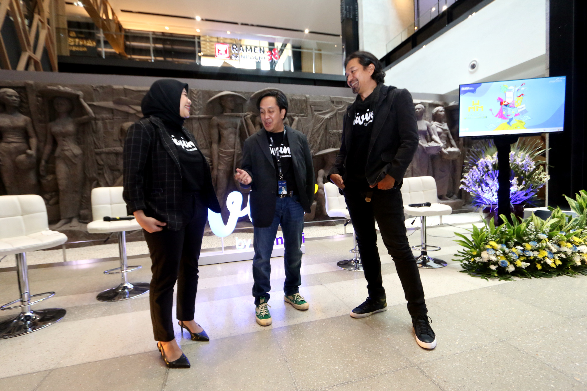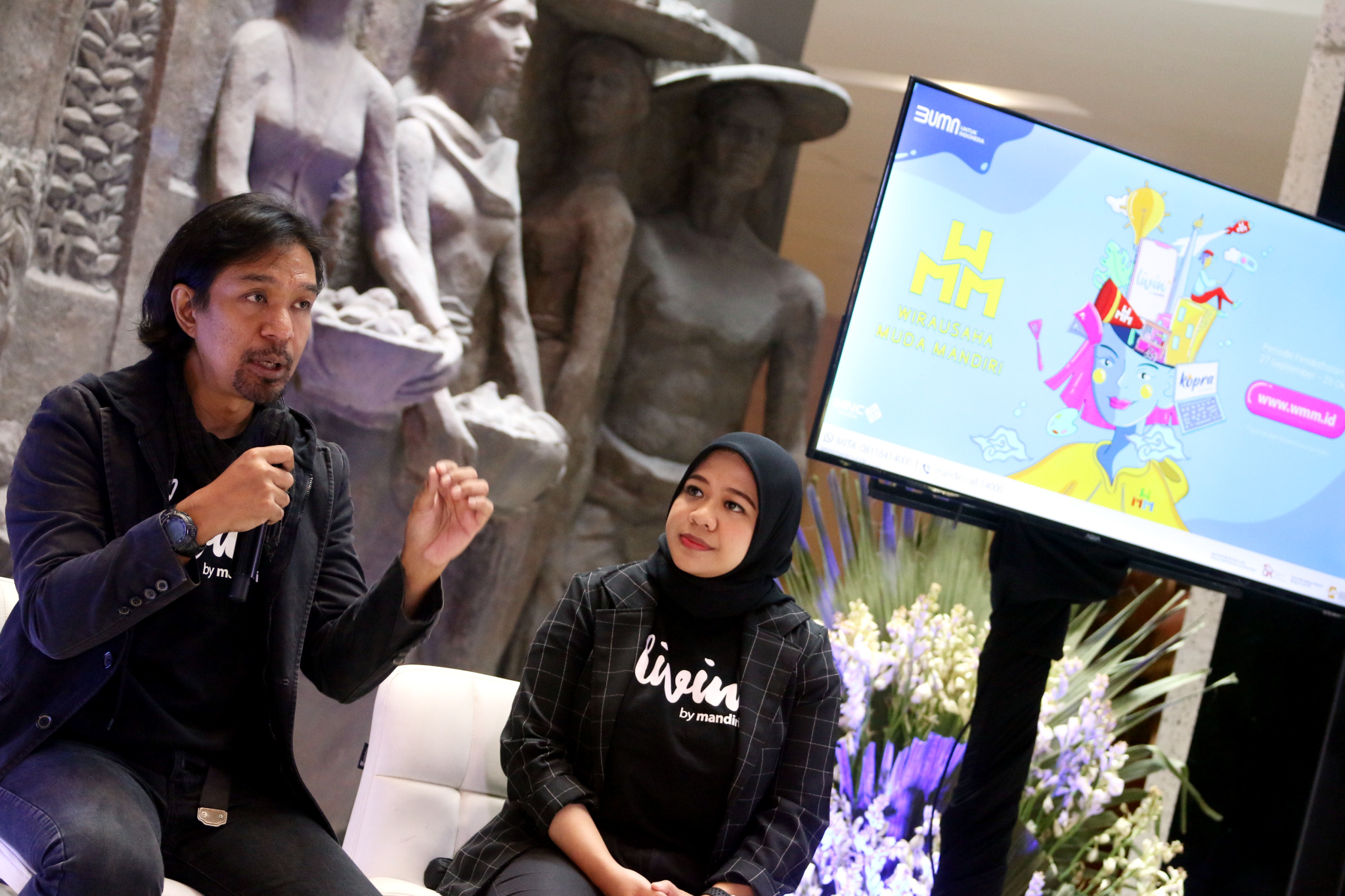 (Ki-Ka) Alumni dan Juara 1 WMM 2018 Melinda Amalia, VP CSR Department Center Bank Mandiri Diwangkoro A. Ratam bersama Sutradara dan Juri WMM 2022 Dimas Djayadiningrat saat kick-off program Wirausaha Muda Mandiri (WMM) 2022 di Sarinah, Jakarta, Selasa (27/9). Bank Mandiri kembali menggelar ajang kompetisi Wirausaha Muda Mandiri (WMM) 2022 untuk mendorong perkembangan bibit-bibit unggul pengusaha muda di Indonesia. Program WMM yang ke-17 ini merupakan salah satu rangkaian kegiatan Bank Mandiri dalam rangka menyambut HUT ke-24 bertema “Digital dan Kekinian” sekaligus sebagai bentuk konsistensi perseroan dalam mendorong ekonomi kreatif.