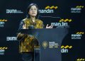 (Kiri – kanan) Wakil Menteri BUMN Kartika Wirjoatmodjo, Menteri Keuangan Sri Mulyani Indrawati dan Direktur Utama Bank Mandiri Darmawan Junaidi saat berjalan memasuki venue Mandiri Investment Forum (MIF) 2025 di Jakarta pada Selasa (11/2). Gelaran tahunan ini menghadirkan lebih dari 22.000 peserta termasuk 700 lebih investor asing dari berbagai negara secara hybrid untuk mendapatkan perkembangan terbaru terkait kebijakan domestik dan global, serta menggali potensi investasi di Indonesia. Event ini, menjadi komitmen Bank Mandiri Group dalam meningkatkan gairan berinvestasi di Indonesia, khususnya investor asing, untuk mendukung target pertumbuhan ekonomi 8% pada 2028-2029.