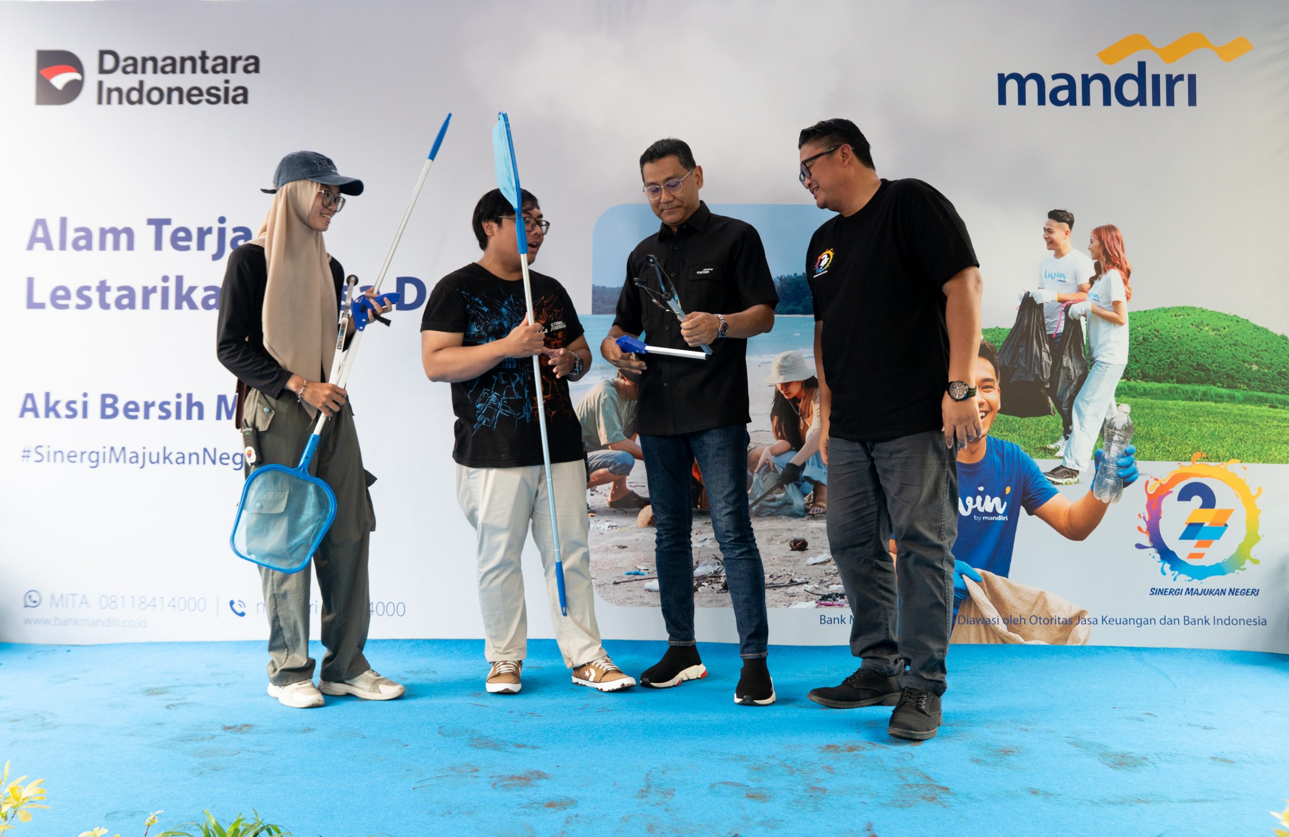 Senior Executive Vice President (SEVP) M. Wisnu Trihanggodo, bersama relawan melakukan Aksi Bersih Mandiri di kawasan Hutan Lindung Angke Kapuk, Jakarta pada Jumat (3/10). Selama 27 tahun hadir dalam semangat “Sinergi Majukan Negeri”, Bank Mandiri turut mengoptimalkan fungsi sungai, waduk, hutan mangrove, dan pantai di 27 titik dengan melibatkan 1.350 Peserta. Bersinergi dengan alumni Wirausaha Muda Mandiri Waste4Change bertujuan untuk mengembalikan fungsi perairan sebagai sumber kehidupan, mulai dari penyediaan air bersih, pengendali banjir, pendukung budidaya ikan, irigasi pertanian, hingga destinasi wisata.