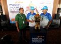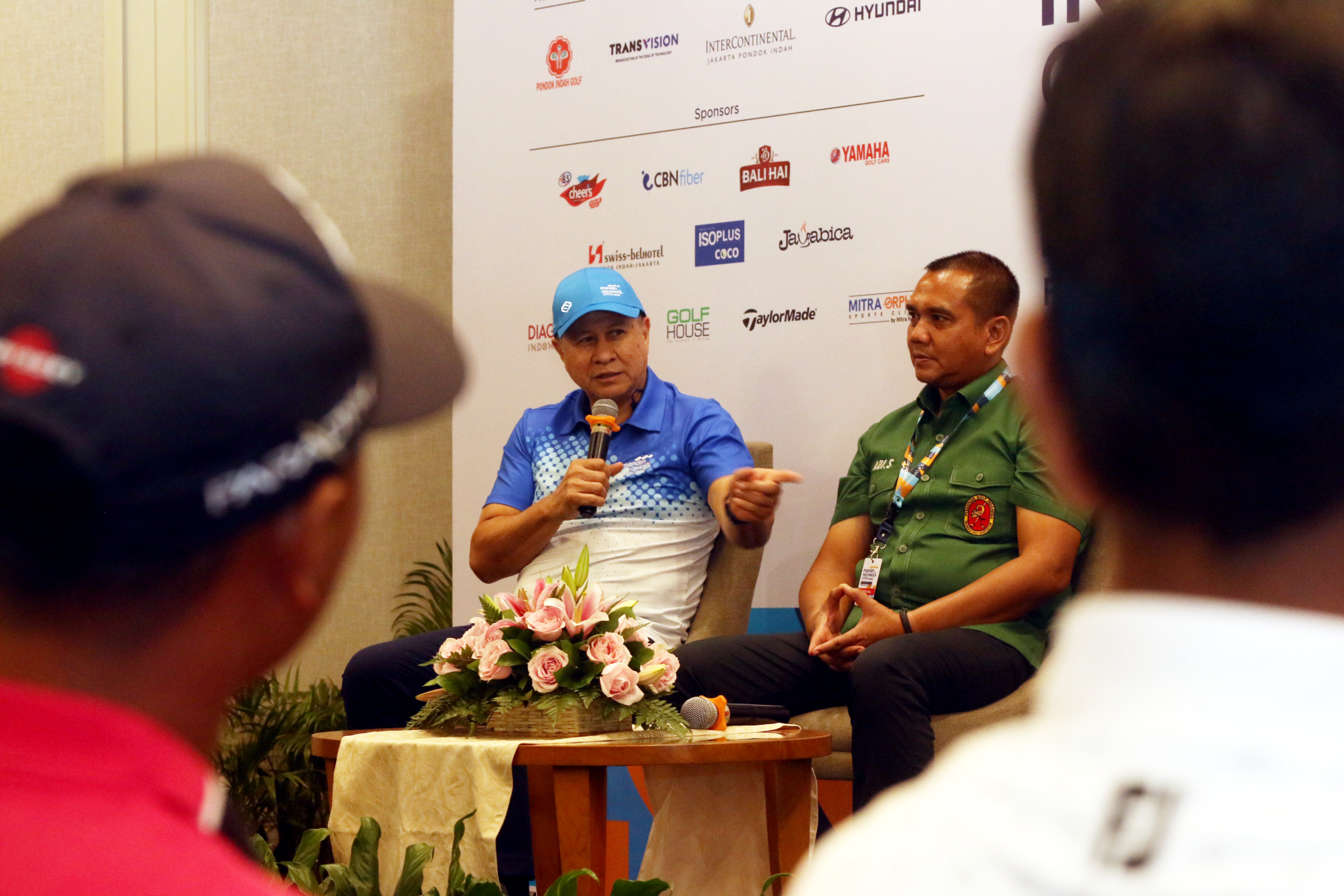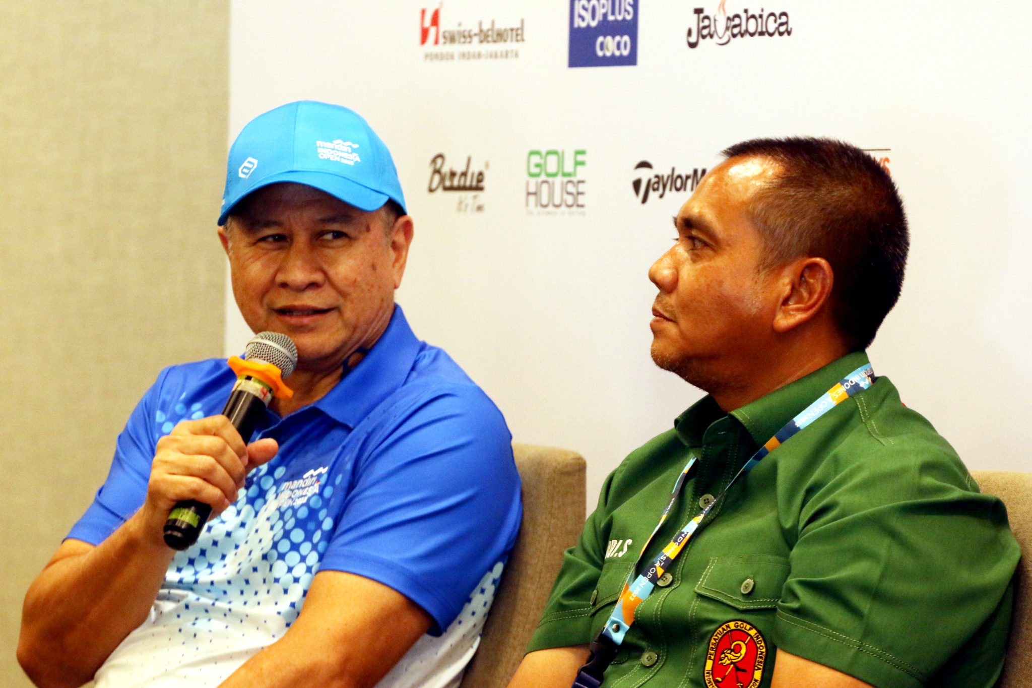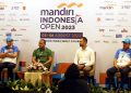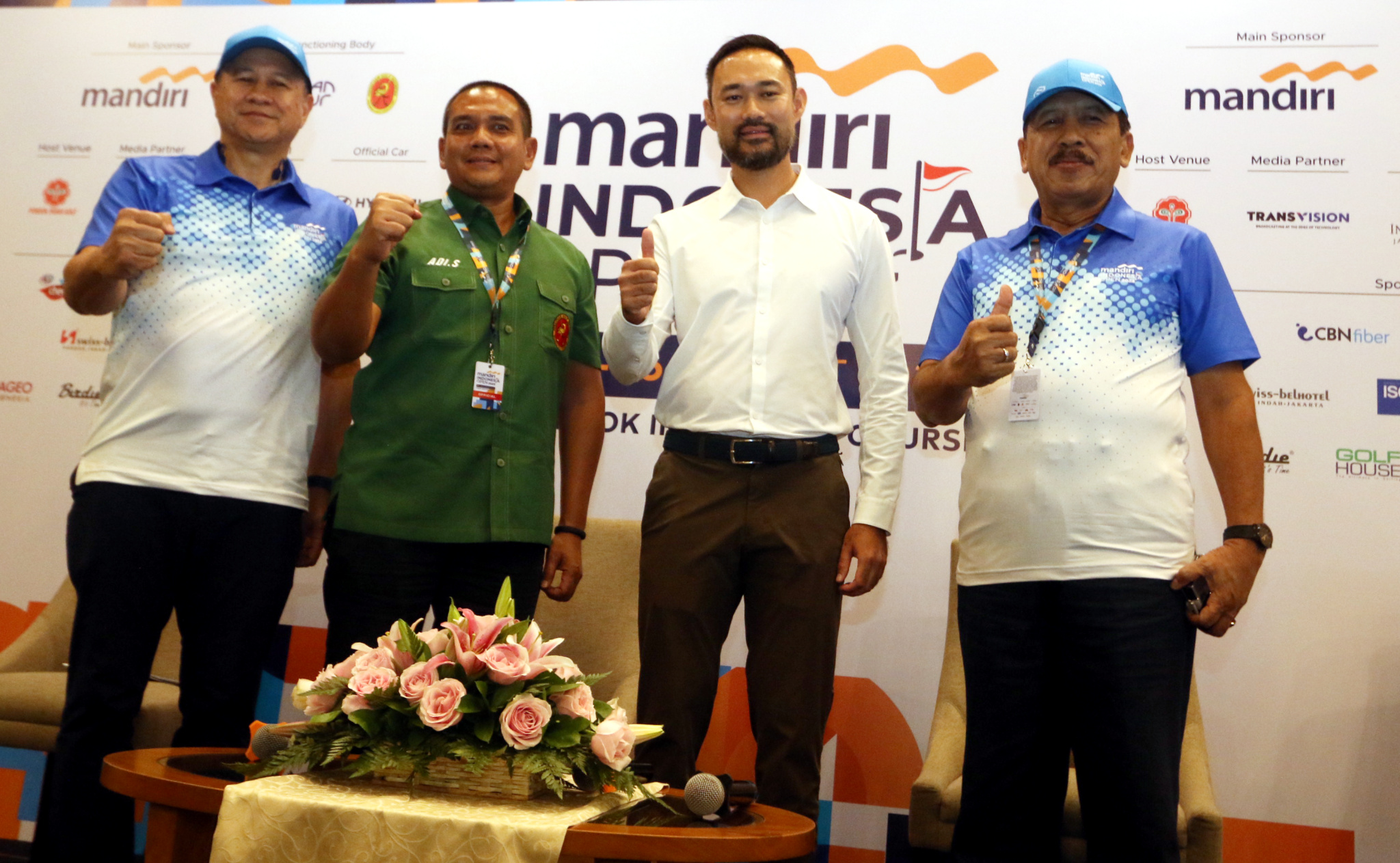 (Kiri- kanan) Direktur Hubungan Kelembagaan Bank Mandiri Rohan Hafas, Ketua Bidang Kejuaraan dan Prestasi Pengurus Besar (PB) Persatuan Golf Indonesia (PGI) Adi Saksono, Commissioner & CEO Asian Tour Cho Minn Thant, dan Presiden Komisaris Pondok Indah Golf Course Agus Suhartono saat berfoto bersama pada Konferensi Pers Mandiri Indonesia Open 2023 di Jakarta, Selasa (1/8). Ajang tahunan yang diikuti 150 pegolf profesional dari beberapa negara di kawasan Asia ini bakal berlangsung pada 3-6 Agustus 2023 di Pondok Indah Golf Course, Jakarta Selatan dengan hadiah total sebesar US$ 500.000. Sebagai sponsor utama, Bank Mandiri berharap ajang yang masuk dalam kalender Asian Tour 2023 ini mampu memberikan kontribusi positif untuk pengembangan prestasi golf di Indonesia dan menggairahkan wisata olahraga (sport tourism) di Tanah Air.