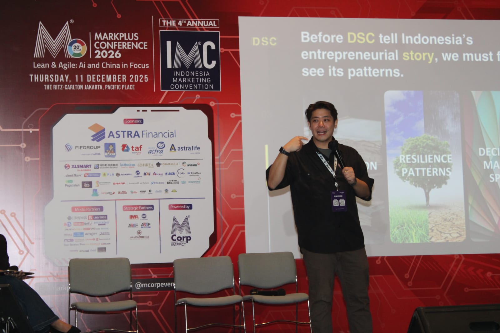 Program Initiator DSC Edric Chandra, Program Initiator DSC menjadi salah satu pembicara dalam gelaran MarkPlus Conference 2025 di Jakarta, Kamis (11/12). Sebagai bagian dari kemitraan strategis yang telah terjalin antara DSC dan MarkPlus selama beberapa tahun untuk memperluas akses edukasi dan jejaring bisnis bagi wirausaha menegaskan kolaborasi berkelanjutan antara DSC dan MarkPlus dalam membangun ekosistem wirausaha Indonesia.