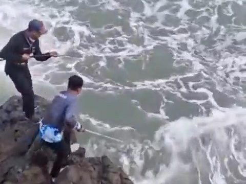 Salah satu pemancing yang diketahui bernama Ujang Agus terlihat masih memegang joran sebelum gelombang besar datang dan menghantam posisi korban. Dalam waktu singkat, keduanya terseret arus kuat dan hilang dari permukaan air.