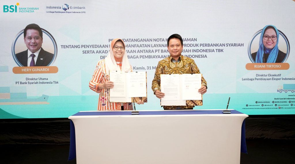 JAKARTA,Cobisnis.com – PT Bank Syariah Indonesia Tbk (BSI) menggandeng kerjasama dengan Lembaga Pembiayaan Ekspor Indonesia (LPEI). Hal ini dituangkan dalam bentuk penandatanganan nota kesepahaman mengenai penyediaan dan pemanfaatan layanan & produk perbankan syariah.
