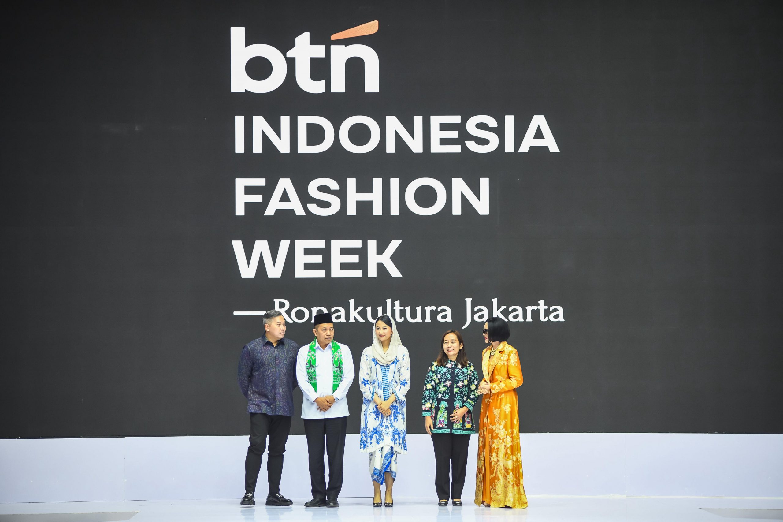 Direktur Network dan Retail Funding PT Bank Tabungan Negara (Persero) Tbk, Rully Setiawan bersama Wakil Menteri Koperasi RI Ferry Joko Juliantono, Wakil Menteri Perdagangan RI Dyah Roro Esti Widya Putri, President of Indonesia Fashion Week