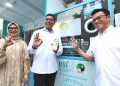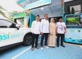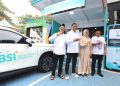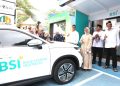 (kiri-kanan) Ketua Yayasan Masjid Raya Bintaro Jaya Prastowo,Direktur Utama PT Bank Syariah Indonesia Tbk Anggoro Eko Cahyo,SEVP Pengembangan Produk Niaga PLN Ririn Rachmawardhini dan Camat Pondok Aren Kota Tangerang Selatan Hendra meresmikan SPKLU dan RVM di area Masjid Raya Bintaro Jaya Jumat (5/9). Kehadiran SPKLU ini untuk mendukung gerakan ekonomi hijau dengan mendukung gerakan menjaga lingkungan berbasis komunitas masjid.
