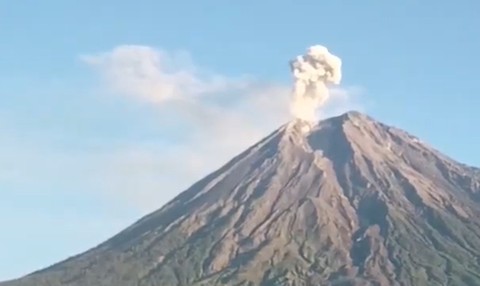 Letusan tersebut disertai dengan luncuran awan panas guguran dari area puncak gunung.