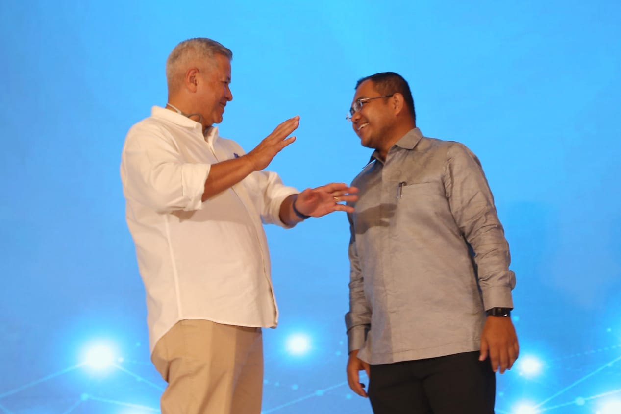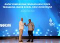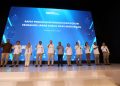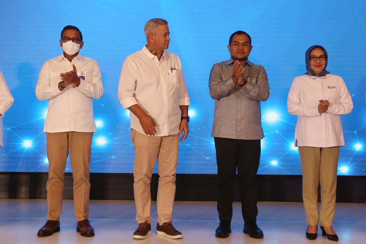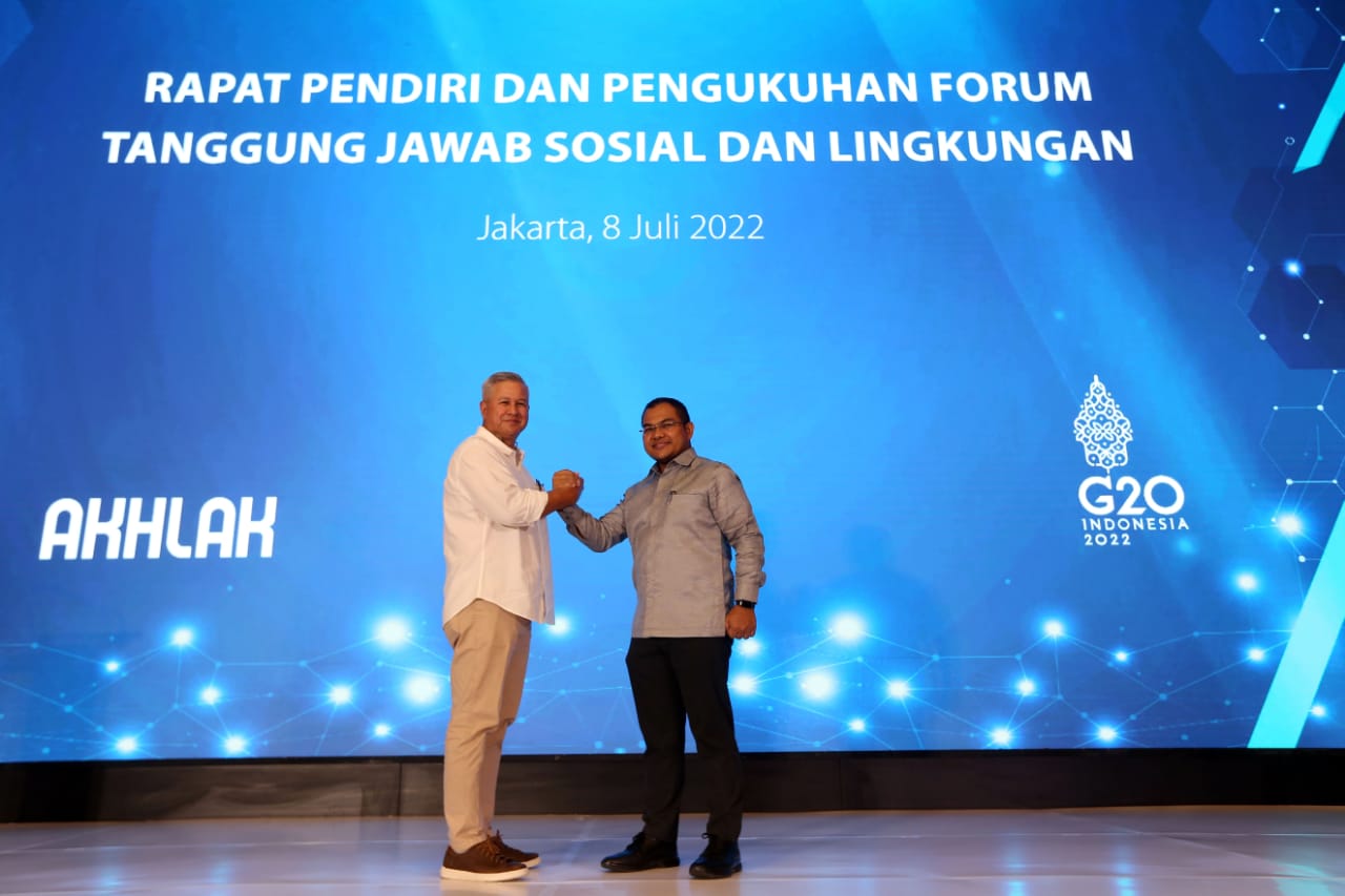 (Ki-Ka) Direktur Bisnis Wholesale & Kelembagaan Bank BRI Agus Noorsanto selaku Sekretaris Forum Tanggung Jawab Sosial dan Lingkungan (TJSL) BUMN, Direktur Hubungan Kelembagaan Bank Mandiri Rohan Hafas sebagai Ketua Forum TJSL BUMN, bersama Deputi SDM dan Teknologi Informasi Kementerian BUMN Tedi Bharata serta Direktur SDM, Tata Kelola & Manajemen Risiko PT Pupuk Indonesia Holding Company (PIHC) Tina T. Kemala yang ditunjuk menjadi Bendahara Forum usai menandatangani Pendirian serta Pengukuhan Pengurus Forum TJSL BUMN Indonesia di Plaza Mandiri, Jakarta, Jumat (8/7). Forum TJSL BUMN ini akan menjadi wadah bagi perusahaan plat merah untuk sharing knowledge serta mensinergikan program TJSL BUMN agar tepat sasaran. Diharapkan, pendirian Forum TJSL BUMN ini akan mampu mengoptimalkan koordinasi antar perusahaan BUMN, Perusahaan Anak hingga Cucu Perusahaan agar mampu memberikan nilai ekonomi dan sosial yang signifikan bagi masyarakat Indonesia.