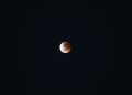 Fase gerhana bulan total terlihat dengan latar Tugu Pembebasan Irian Barat di Lapangan Banteng, Jakarta, Senin (8/9/2025). Gerhana bulan total berwarna merah darah atau blood moon tersebut berlangsung dari fase awal hingga gerhana berakhir sekitar 5 jam 29 menit 48 detik dan dapat disaksikan di seluruh Indonesia.