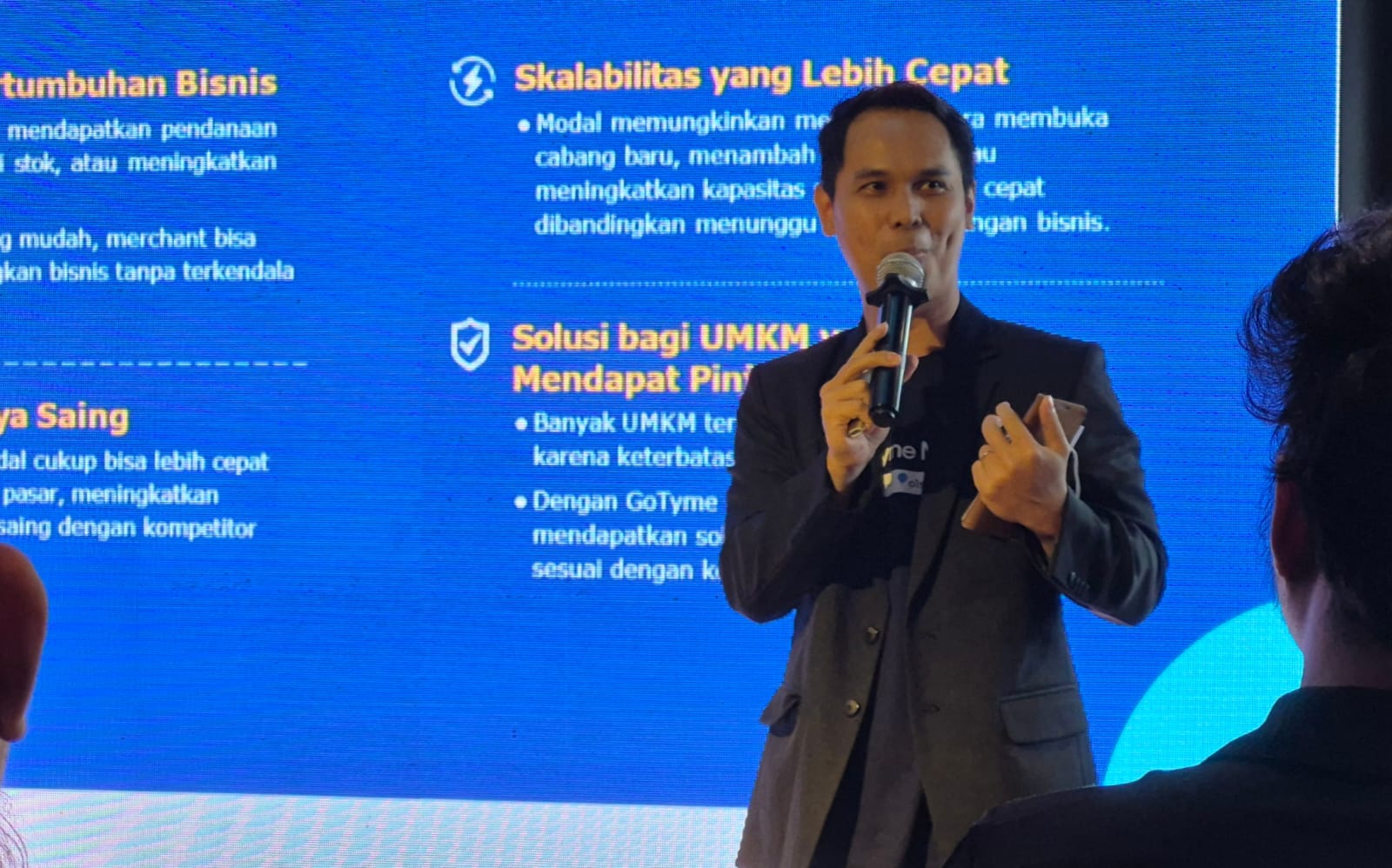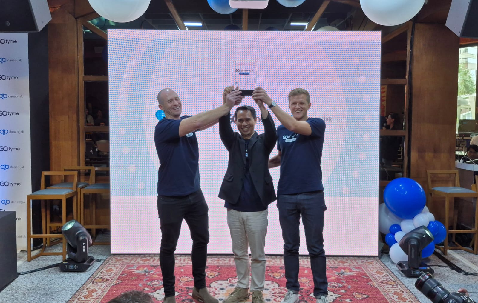 Novendy Chen dan Founder & CEO danabijak Markus Prommik saat Peluncuran Merchant Cash Advance Solusi Bagi UMKM Indonesia di Jakarta, Rabu (19/2). Bermitra dengan Danabijak dan Olsera, GoTyme Indonesia resmi meluncurkan Merchant Cash Advance (MCA) pertama di Indonesia, MCA ini merupakan solusi pinjaman bagi pelaku UMKM yang memiliki tujuan untuk meningkatkan inklusi keuangan di Indonesia.