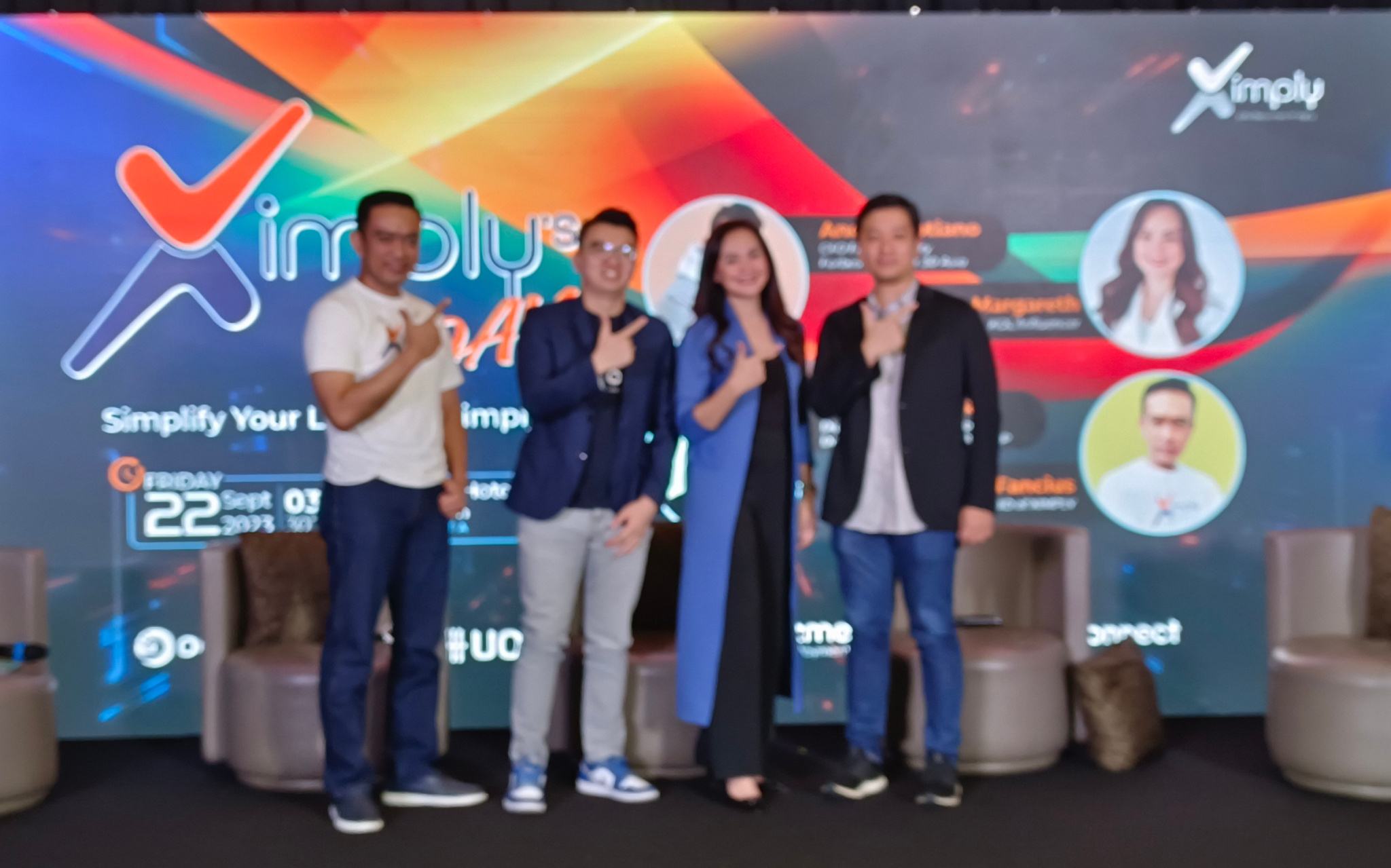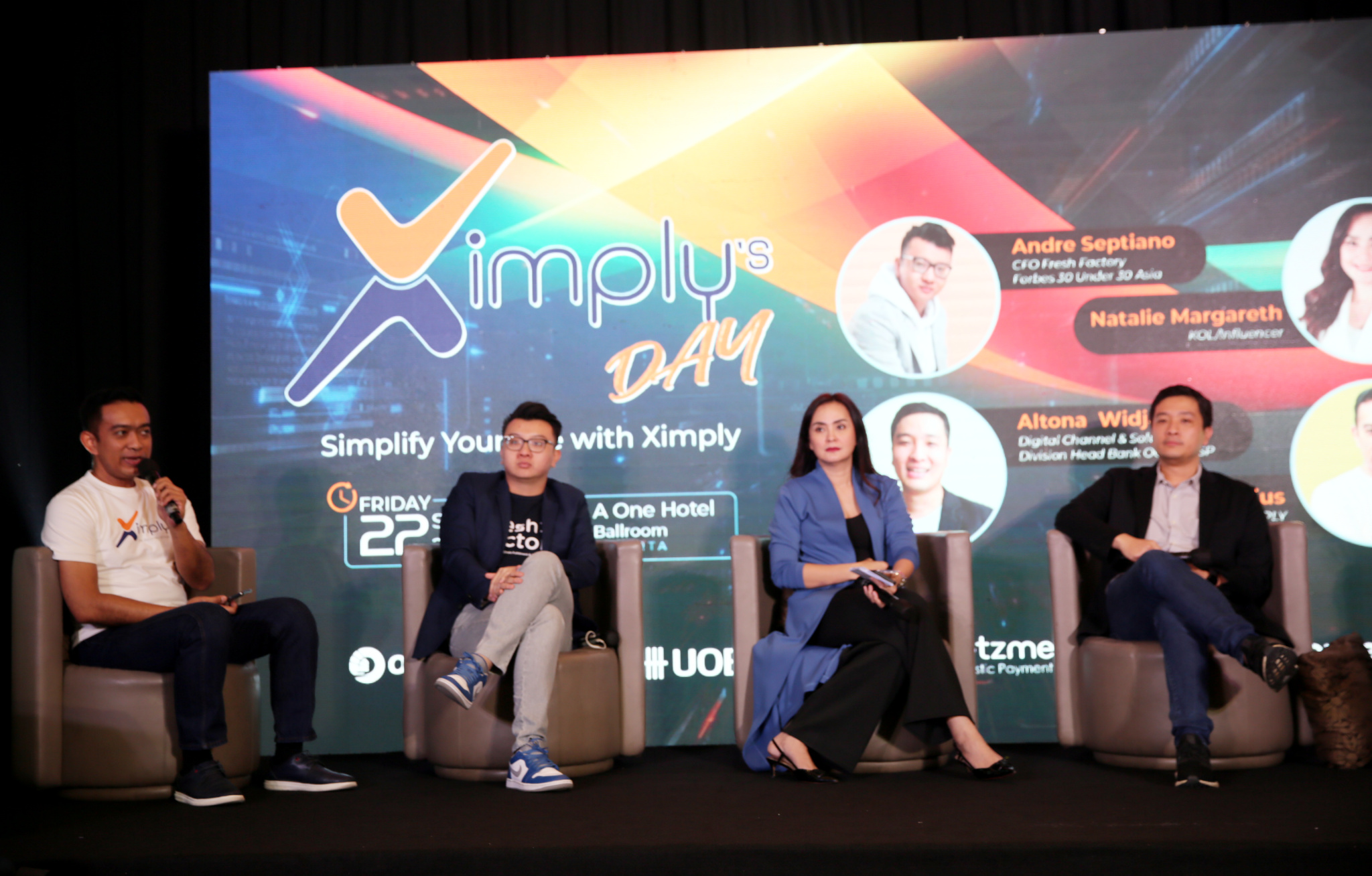 Ki-ka :Bony Fancius sbf CIO Of Ximply, Andre Septiano sbf CFO Fresh Factory Forbes 30 under 30 Asia , Natalie Margareth sbg KOL/Influencer bersama Altona Widjaja sbg Digital Channel & Solutions Division Head Bank OCBC NISP saat acara Talkshow Ximply’s Day Simple Your Life with Ximply dan Grand Launching Ximply di Jakarta, tgl 22 September 2023. Tidak hanya memberikan kemudahan dalam pencatatan pengeluaran dan kontrol terhadap keuangan, Ximply juga