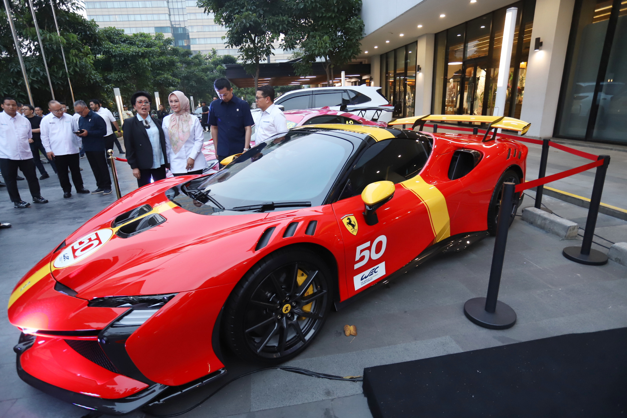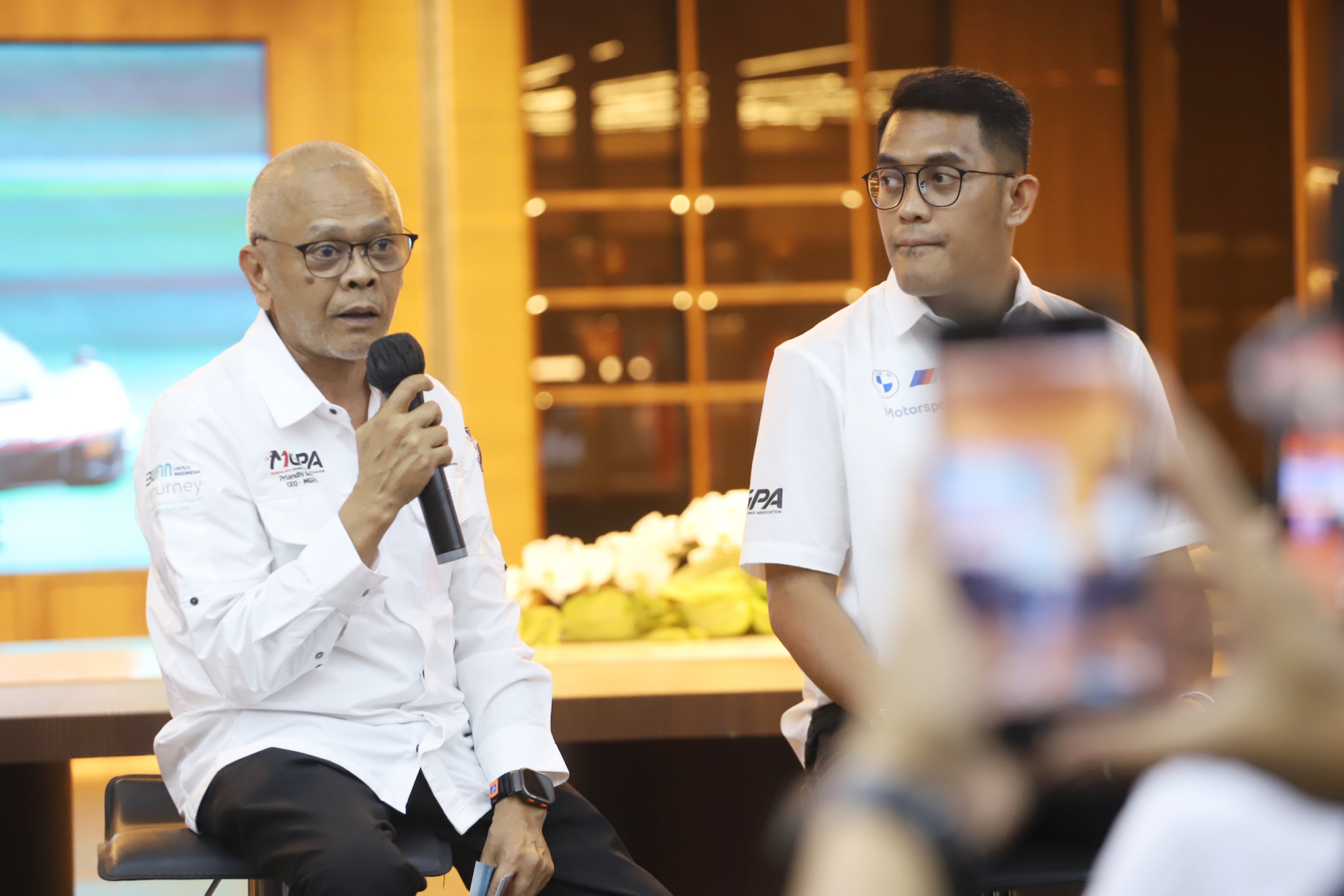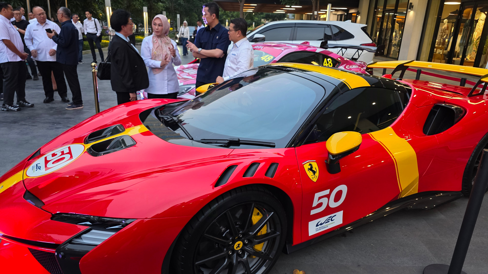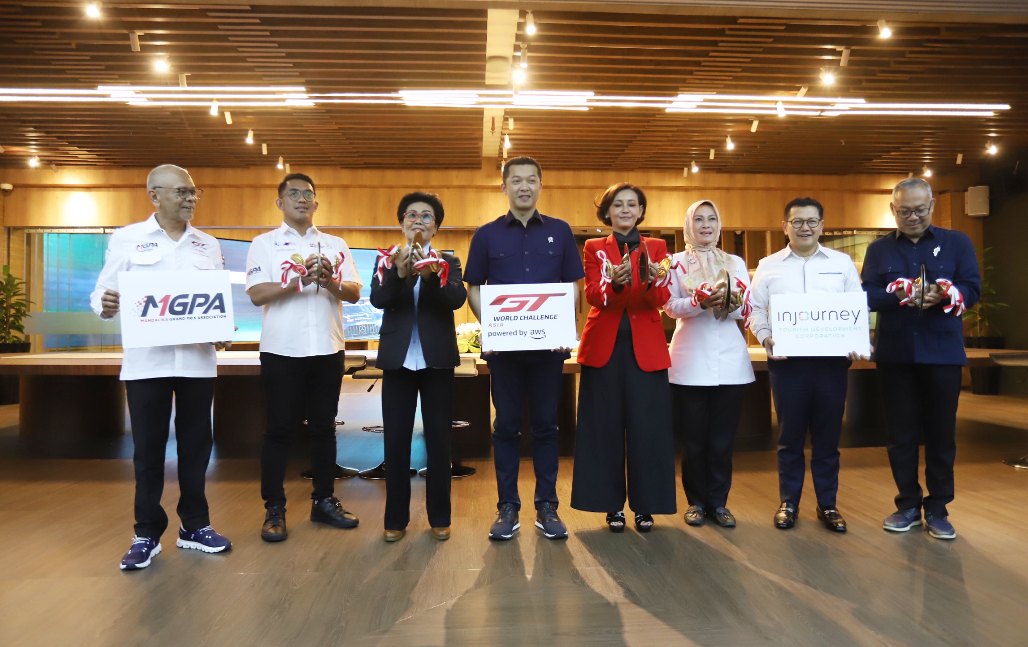 Wakil Menteri Pemuda dan Olahraga Republik Indonesia, Taufik Hidayat (tengah) didampingi Plt. Direktur Utama InJourney Tourism Development Corporation (ITDC), Ahmad Fadjar (kanan) dan Komisaris Utama ITDC, Irna Narulita meninjau mobil balap GT3 usai press conference GT World Challenge Asia 2026 di Jakarta, Senin, 06 April 2026.