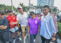 Gubernur DKI Jakarta Pramono Anung bersama Direktur Utama PT Bank Tabungan Negara (Persero) Tbk, Nixon LP Napitupulu dan Corporate Secretary BTN Ramon Armando meninjau booth pendaftaran BTN Jakarta International Marathon (BTN JAKIM) 2026 di area Car Free Day Bundaran HI, Jakarta, Minggu (28/9). BTN JAKIM 2026 yang akan digelar pada 14 Juni 2026 menargetkan sekitar 40.000 pelari nasional maupun mancanegara. Bagi Pemprov DKI, ajang ini menjadi etalase sport tourism internasional untuk memperkuat citra Jakarta sebagai kota marathon dunia, sementara bagi BTN, event ini mempertegas peran perseroan dalam mendukung gaya hidup sehat masyarakat sekaligus pembangunan ekonomi melalui sport tourism.