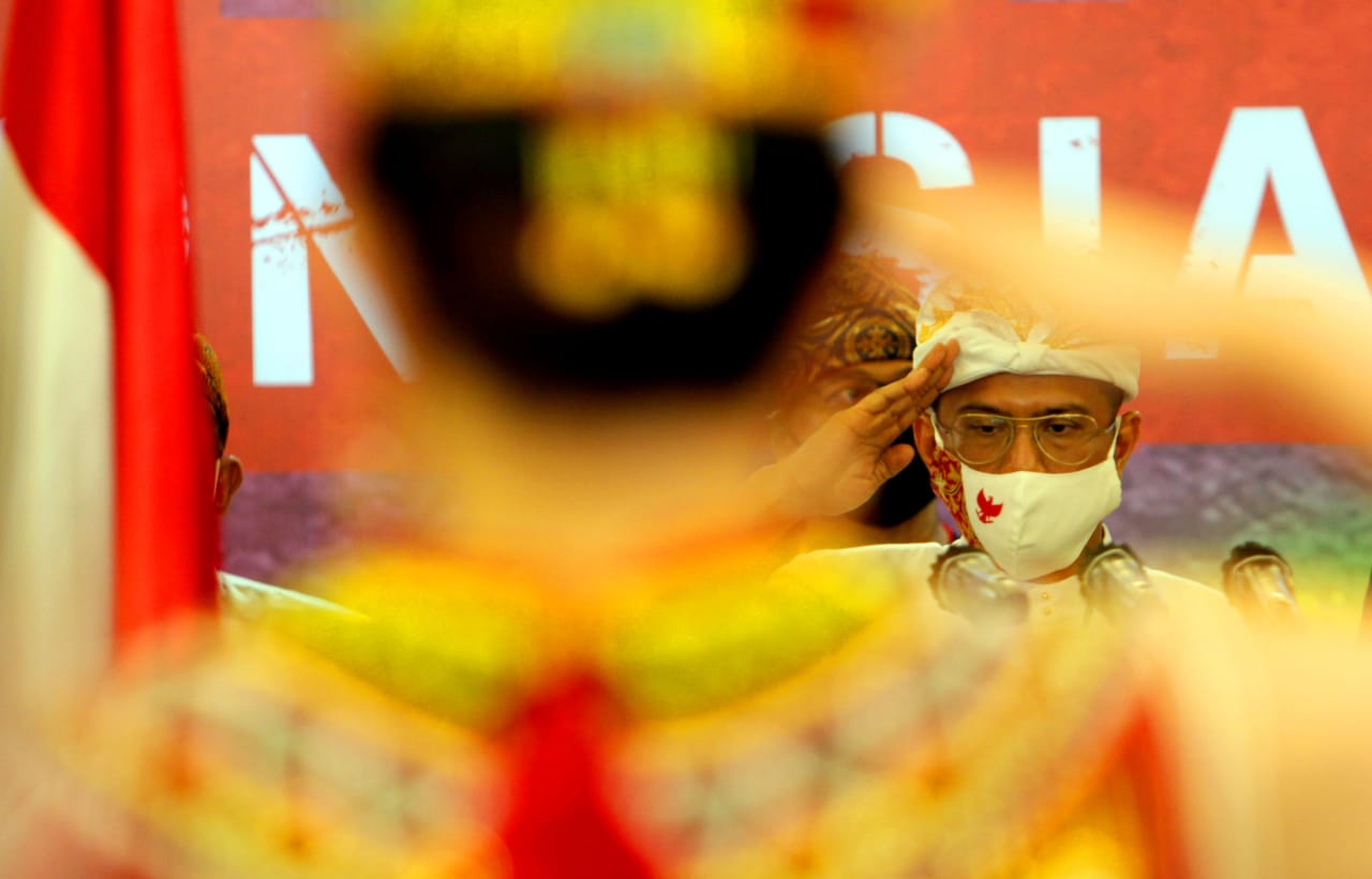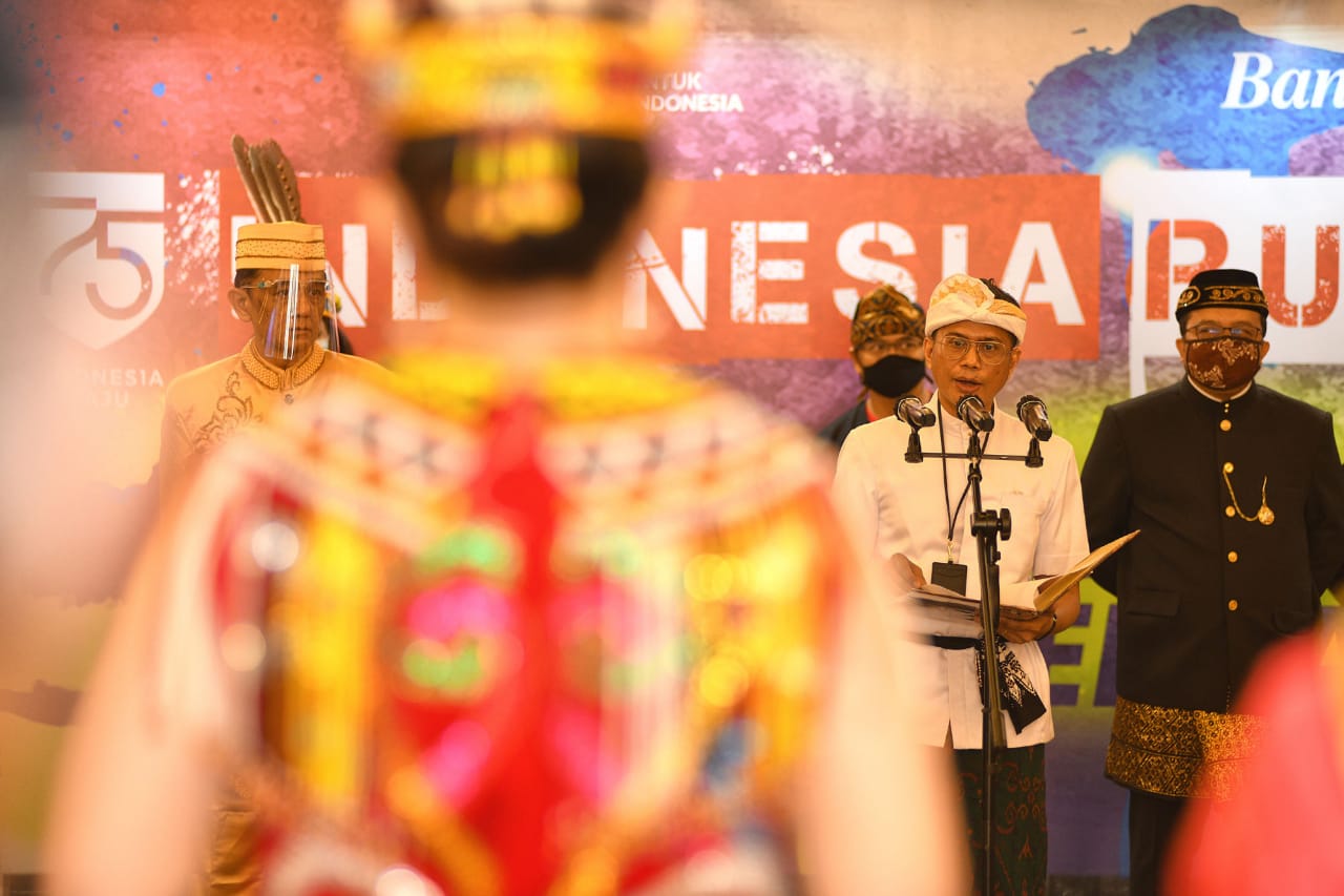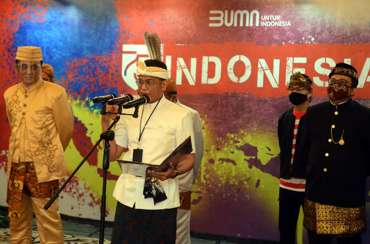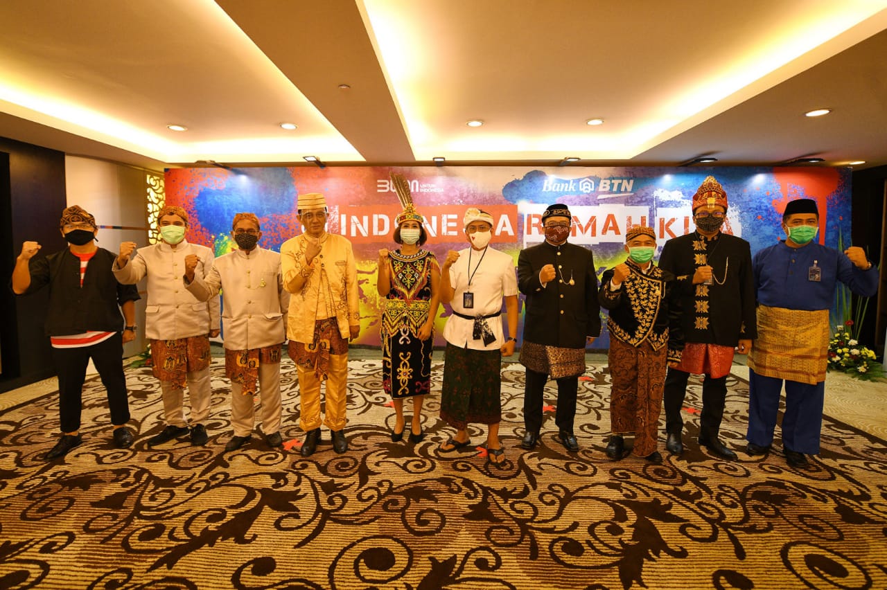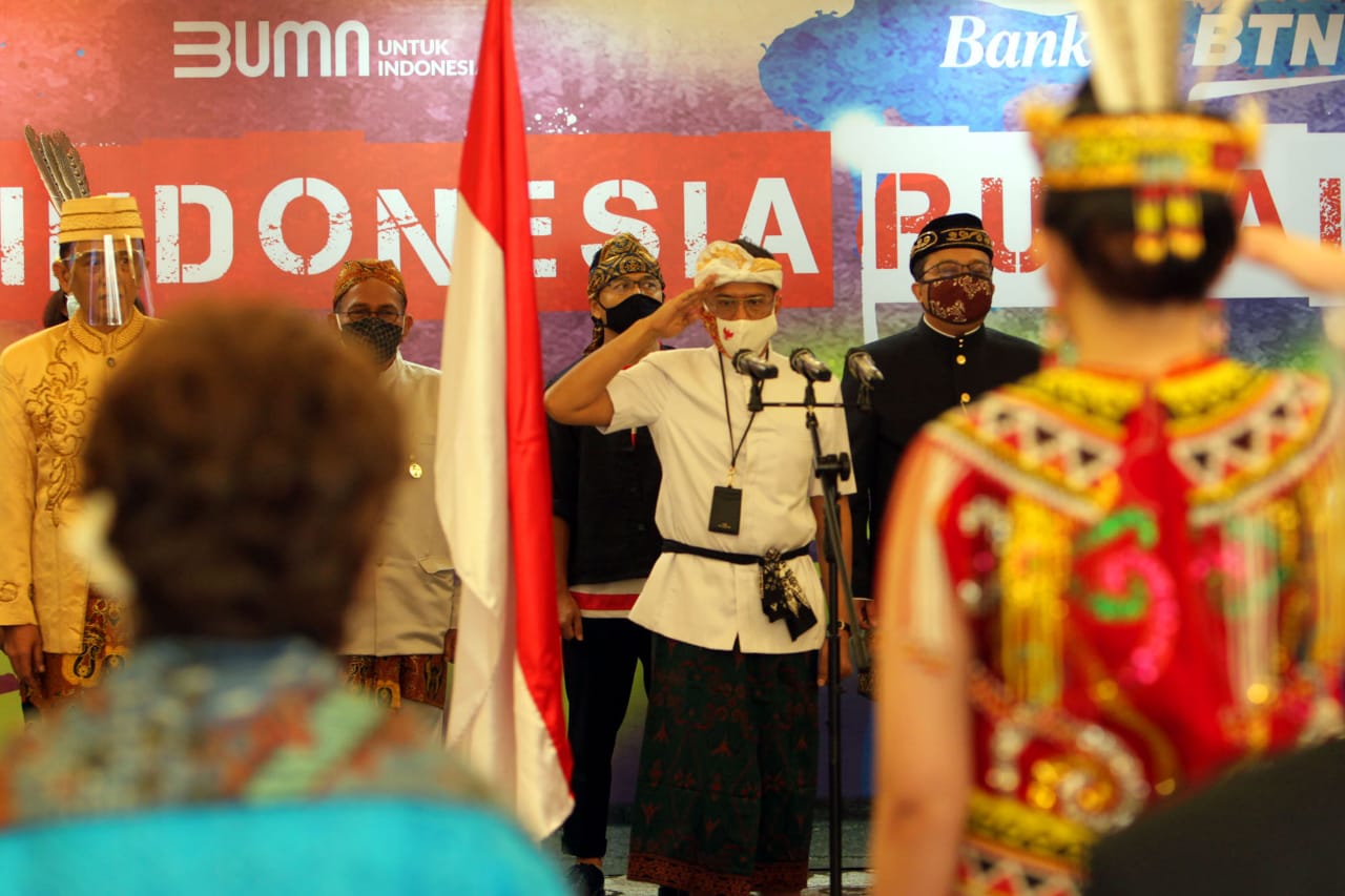 Ditektur Utama PT Bank Tabungan Negara (Persero) Tbk Pahala Nugraha Mansury bersama Komisaris Utama BTN Chandra M Hamzah dan anggota Direksi serta Komisaris BTN mengikuti upacara bendera secara daring dalam rangka Hari Ulang Tahun ke 75 Kemerdekaan Republik Indonesia di Jakarta, Senin (17/8). Pada peringatan HUT Kèmerdekaan RI tersebut, seluruh Direksi, Komisaris, Kepala Divisi, Kepala Kantor Wilayah dan Kepala Cabang BTN seluruh Indonesia mengenakan baju daerah. Usai mengikuti upacara, Direksi BTN langsung mengunjungi maket foto-foto kegiatan HUT Kemerdekaan RI yang diikuti oleh seluruh pegawai dan kantor cabang BTN sekaligus melakukan penjurian.