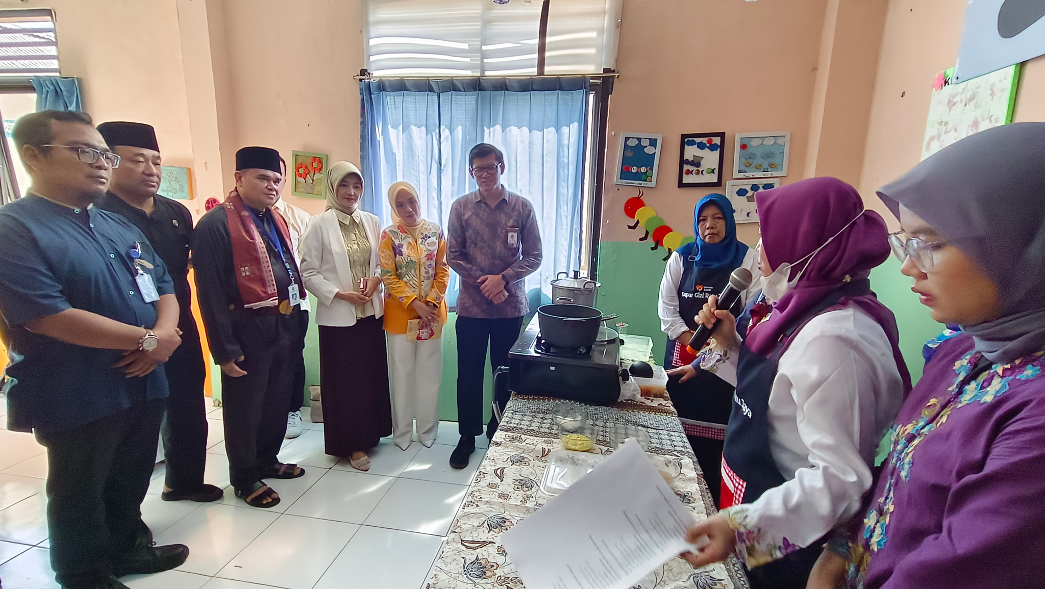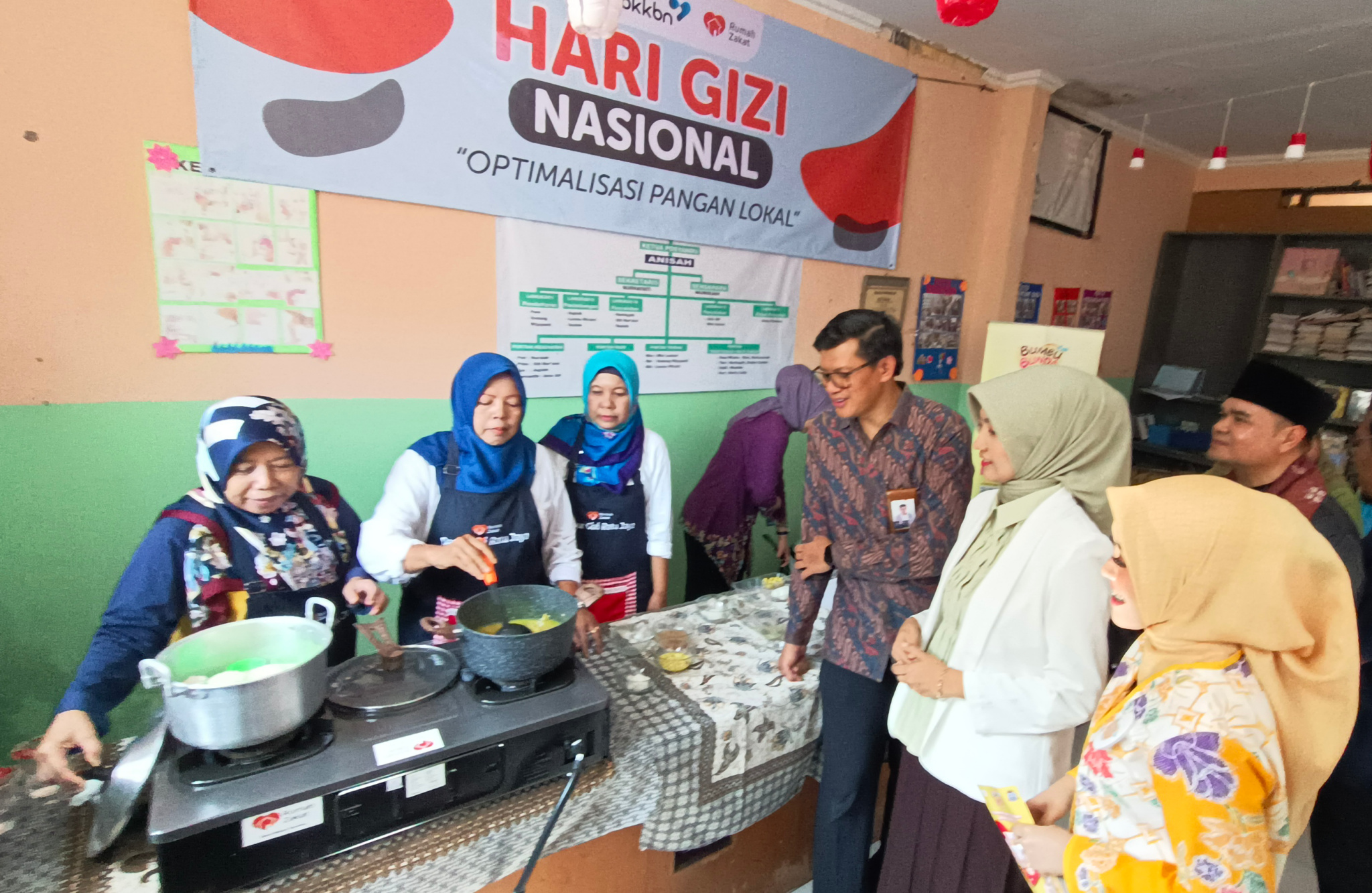 Chief Executive Officer (CEO) Rumah Zakat Irvan Nugraha (ketiga kanan), CEO Gizi Nusantara Esti Nurwanti (kedua kanan) dan Founder Bumbu Bunda Elia Lia Amalia (kanan) berbincang dengan ibu-ibu PKK Kelurahan Ratujaya saat Live Cooking disela acara sekinar gizi dan live cooking dengan tema “Optimalisasi Pangan Lokal” di Depok, Jawa Barat, Kamis (25/1/2024). Dalam rangka memperingati Hari Gizi Nasional (HGN), Bumbu Bunda Elia berkolaborasi dengan BKKBN dan Rumah Zakat menggelar acara tersebut untuk memberikan edukasi kepada masyarakat agar bisa mengoptimalisasi bahan pangan yang ada di lingkungan sekitarnya agar menjadi asupan gizi bagi keluarga.