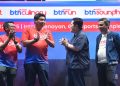 Direktur Utama BTN Nixon LP Napitupulu bersama Menteri BUMN Erick Thohir, Menteri PKP Maruarar Sirait, Ketua Komisi XI DPR Misbakhun dan Komisaris Utama BTN Chandra M Hamzah memegang bola sebagai tanda peresmian dan grand launching Super App Bale by BTN di Jakarta, Minggu, (9/2). Bale by BTN merupakan inisiatif strategis perseroan untuk bisa lebih kompetitif lagi dalam menjadikan BTN sebagai bank transaksional. Diharapkan dengan hadirnya Bale by BTN dapat menarik lebih banyak dana murah ritel secara berkelanjutan dan juga mempermudah nasabah untuk memenuhi kebutuhannya secara digital.