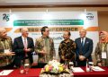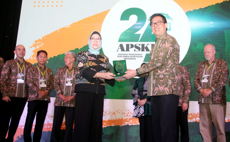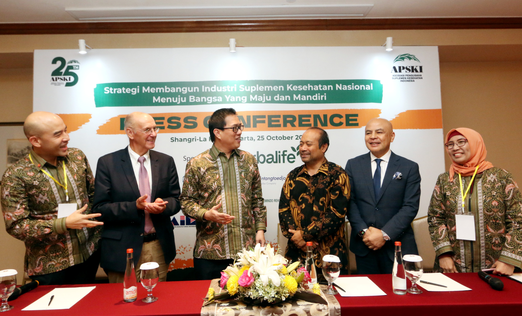 Plt. Deputi Bidang Pengawasan Obat Tradisional, Suplemen Kesehatan dan Kosmetik, Badan Pengawas Obat dan Makanan (BPOM), Reri Indriani (kedua kanan), Plt. Direktur Produksi dan Distribusi Kefarmasian Kemenkes RI, Eka Purnamasari (kedua kiri), Ketua Umum Asosiasi Pengusaha Suplemen Kesehatan Indonesia (APSKI), Decky Yao (kanan) dan Wakil Ketua Bidang Pemerintahan dan Teknis APSKI, Arif Mustolih berbincang bersama usai pembukaan seminar APSKI di Jakarta, 25/10/2023. Dalam rangka ulang tahun ke-25, APSKI menyelenggarakan seminar bertema “Strategi Membangun Industri Suplemen Kesehatan Nasional Menuju Bangsa yang Maju dan Mandiri” yang menghadirkan para pakar dan narasumber dari Indonesia maupun mancanegara untuk memberikan paparan dan berbagi pengetahuan di bidang suplementasi.
